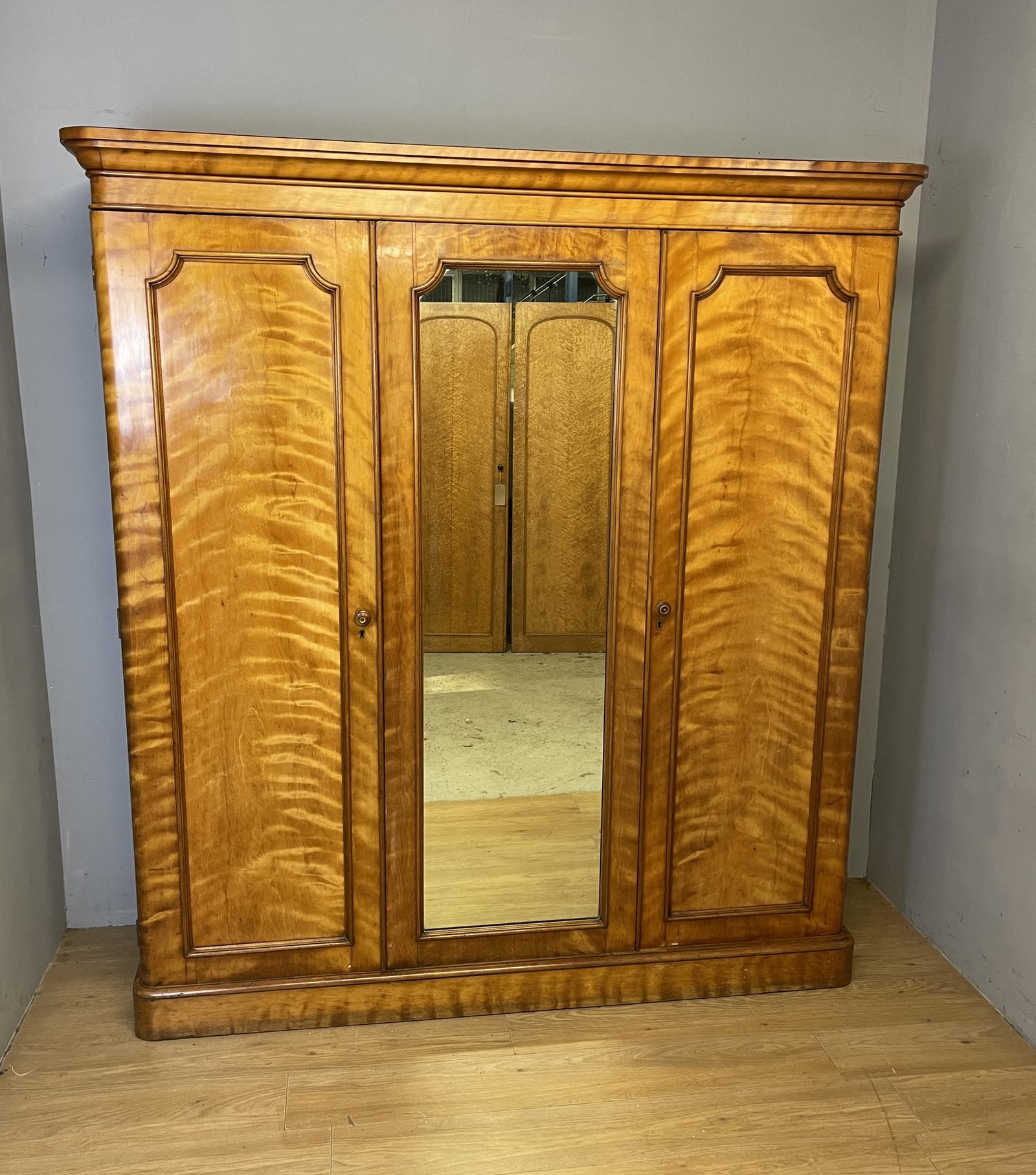 19th Century Country House Satin Birch Triple Wardrobe