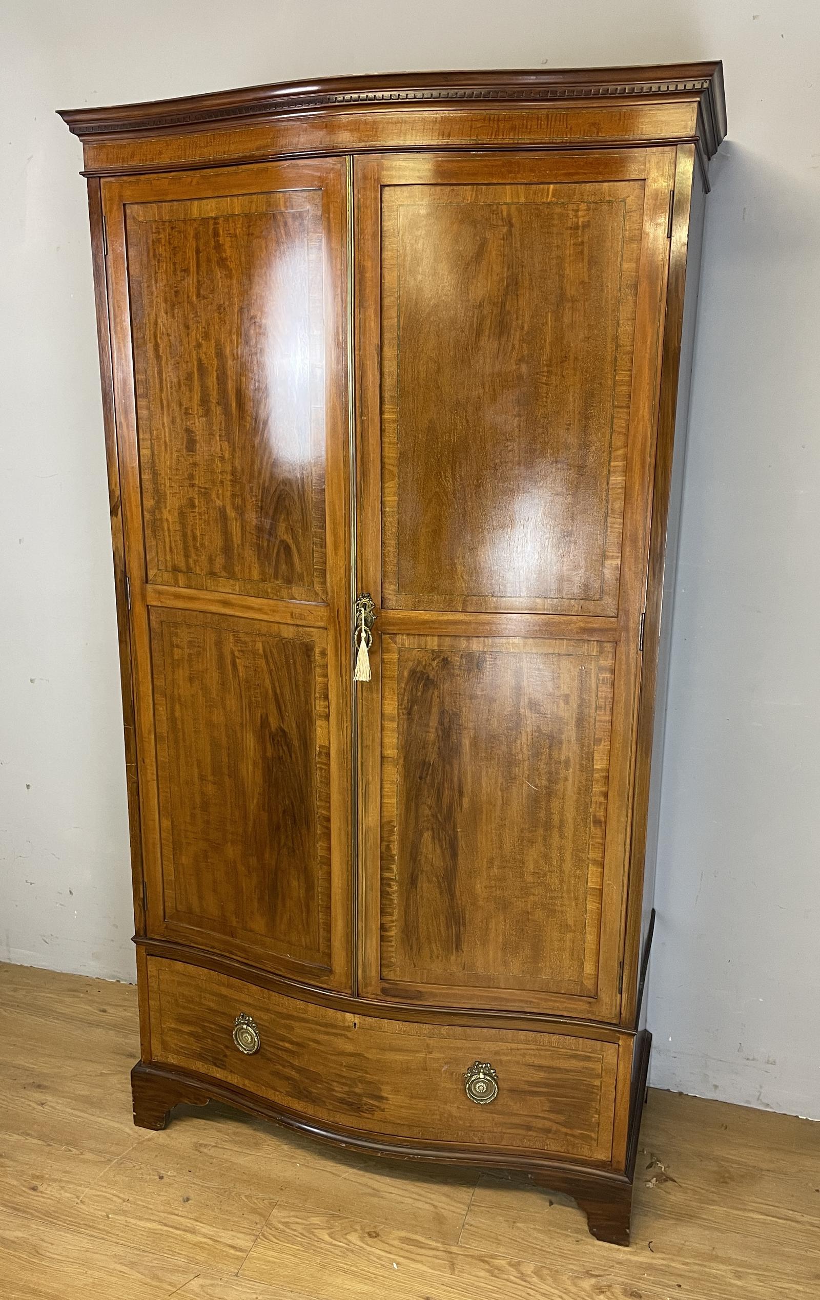 19th Century Country House Serpentine Inlaid Mahogany Double Wardrobe with Provenance