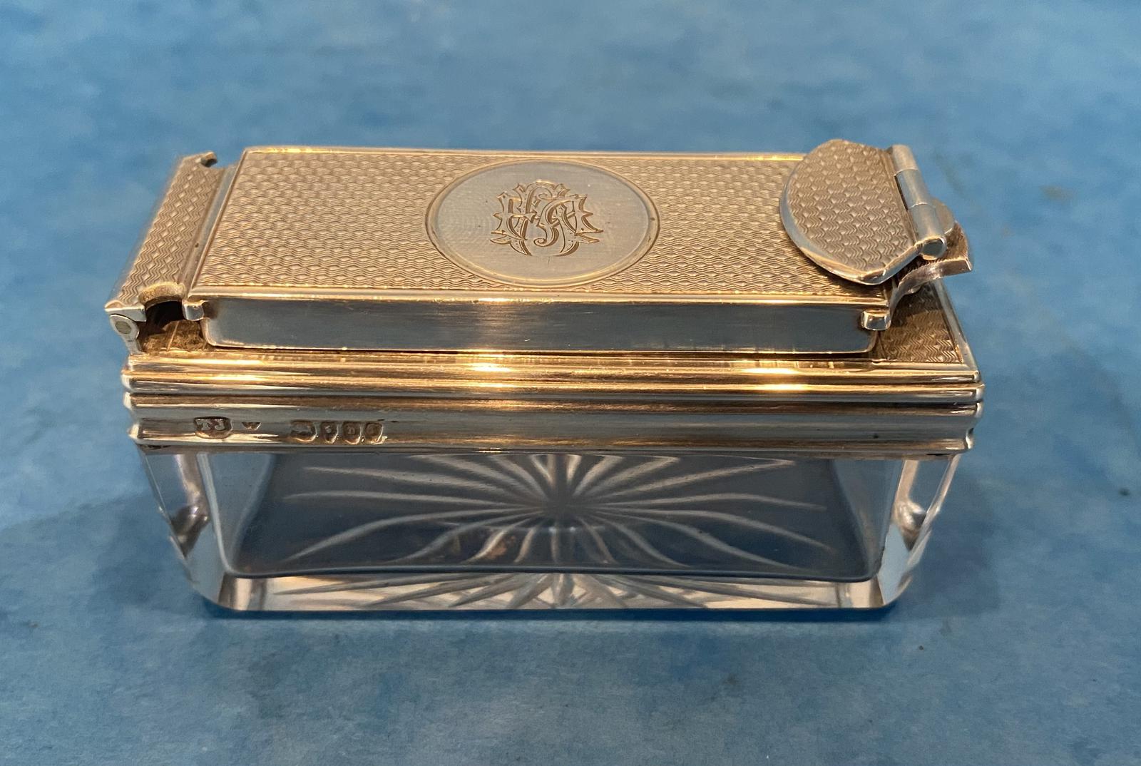 19th Century Cut Glass Ink Pot with Silver London Hallmark to the Lid c.1863