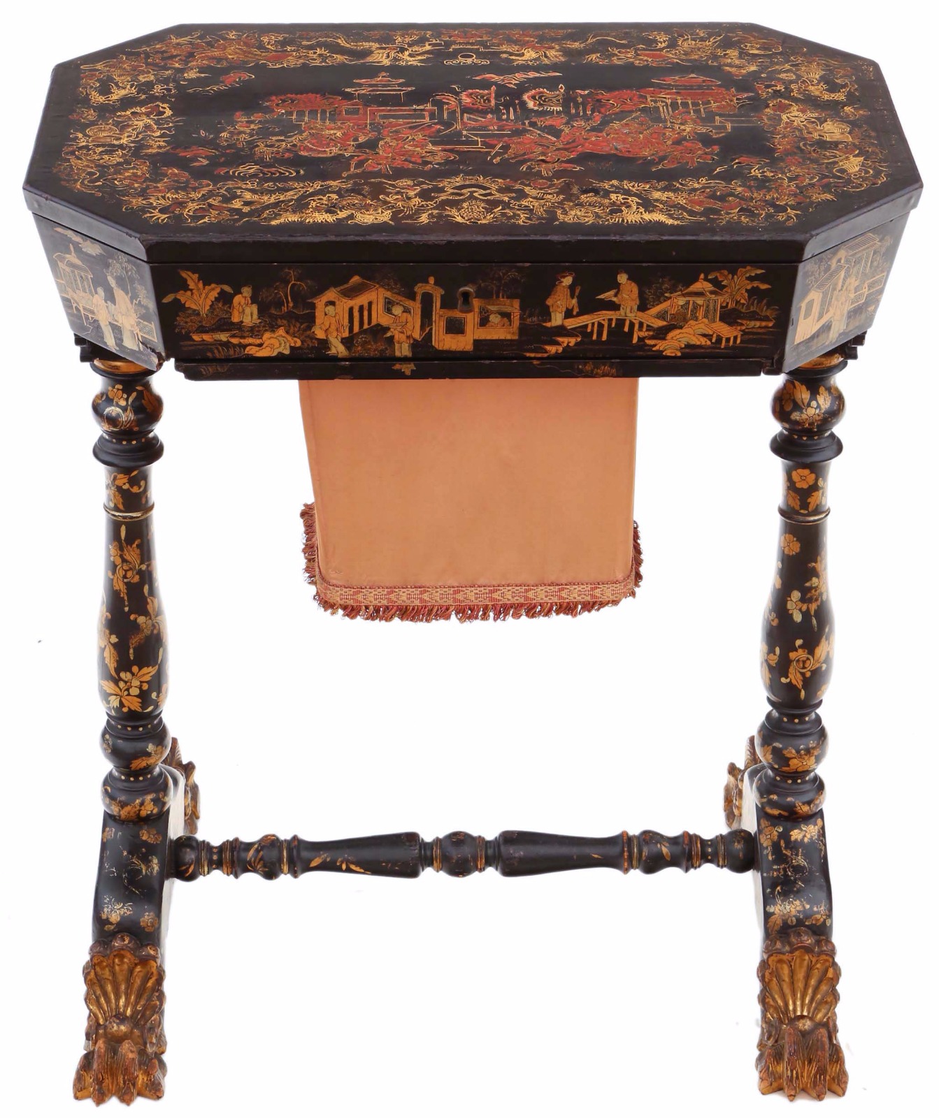 19th Century Decorated Chinoiserie Work Sewing Table Box