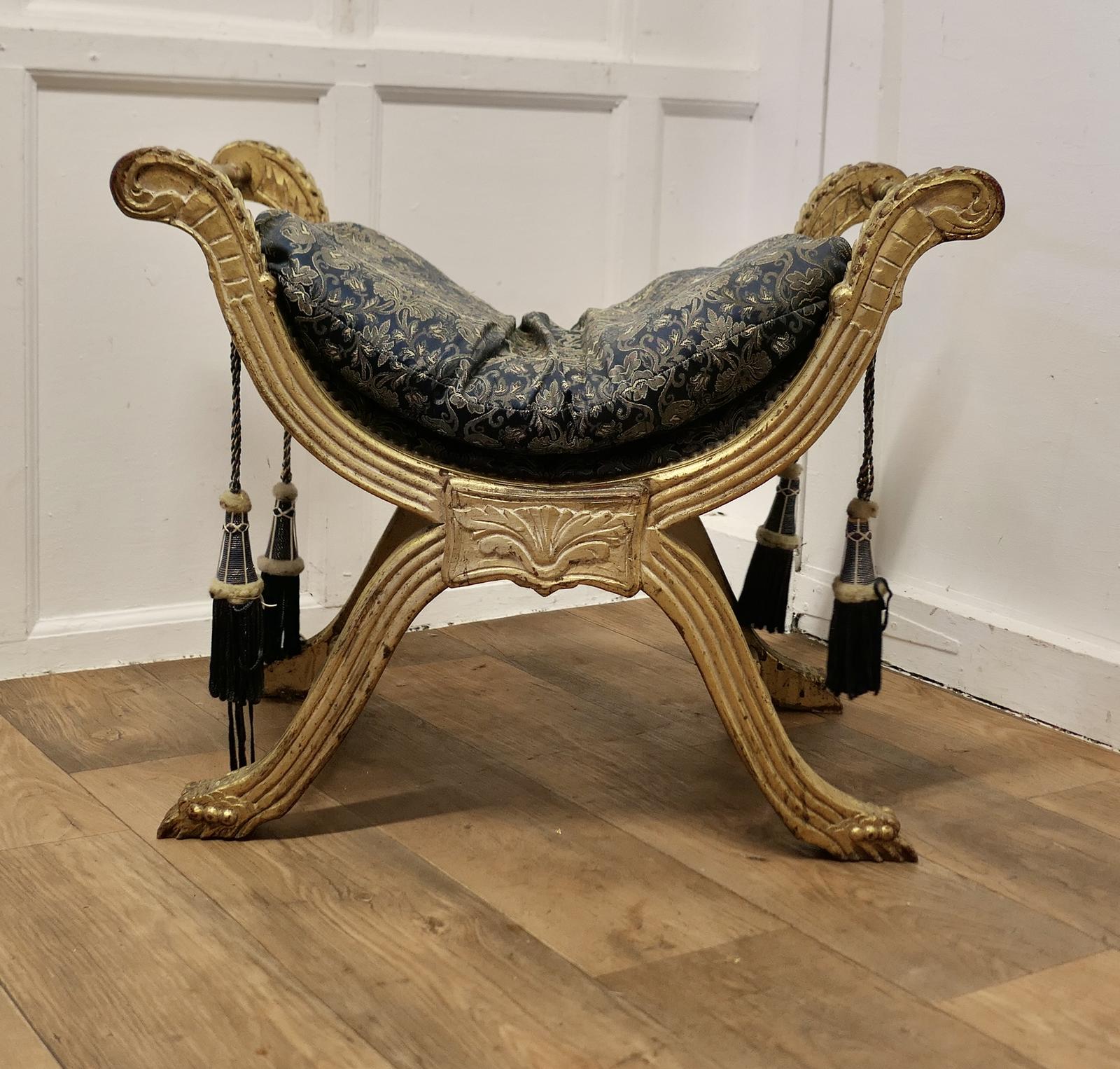 19th Century Empire Style Gilt X Frame Stool