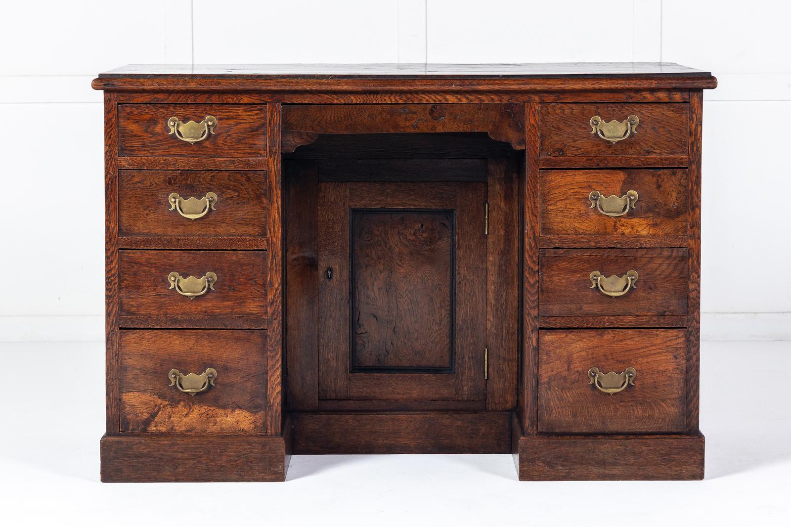 19th Century English Burr Oak Pedestal Kneehole Desk (1 of 5)