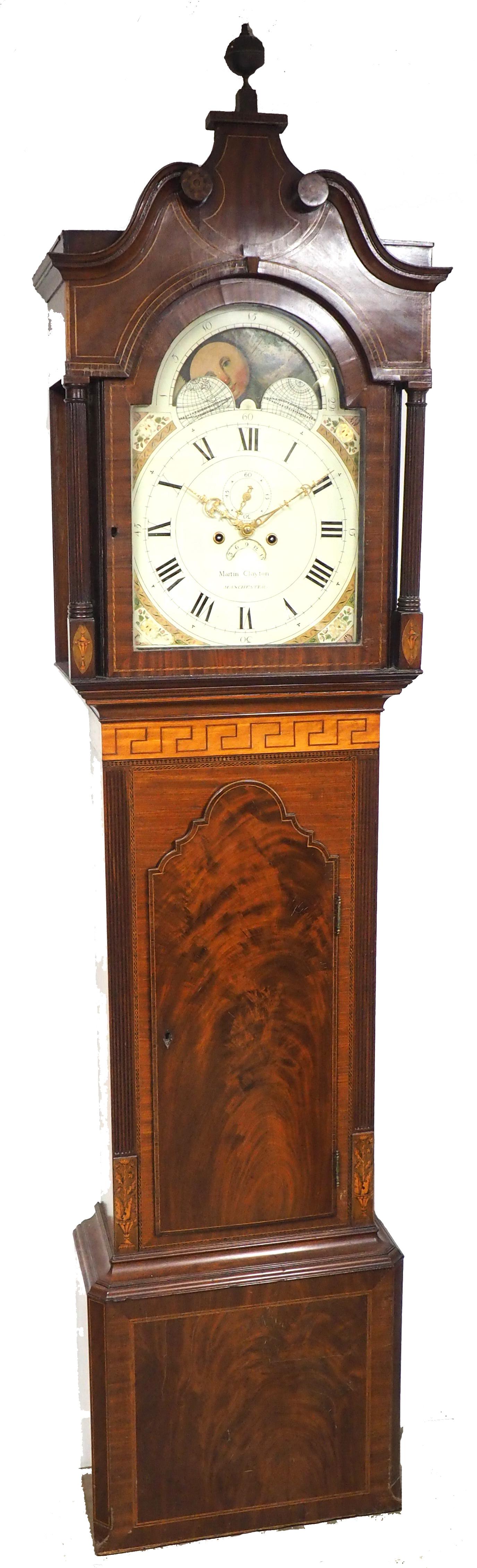19th Century English Longcase Clock in Mahogany Painted Moon Roller Dial 8-Day Signed Martin Clayton (1 of 5)