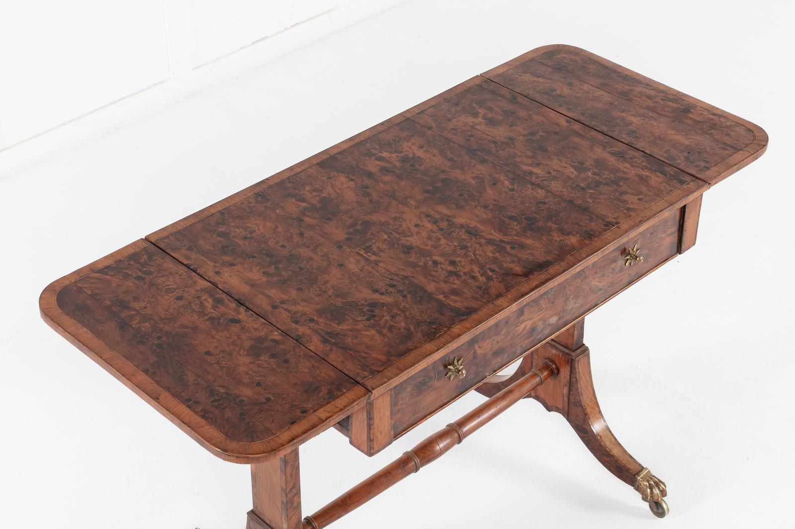 19th Century English Regency Burr Yew Sofa Table