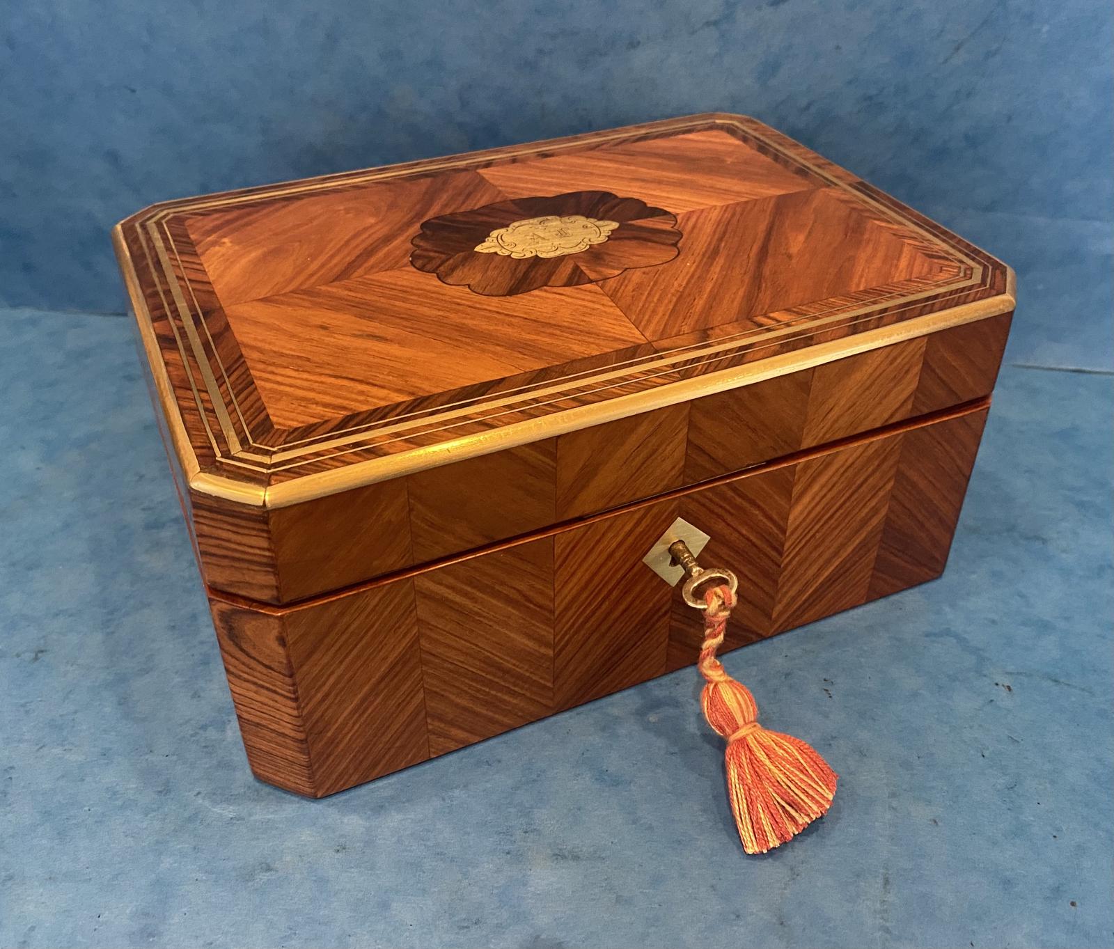 19th Century French Angle Cut Tulipwood Jewellery Box