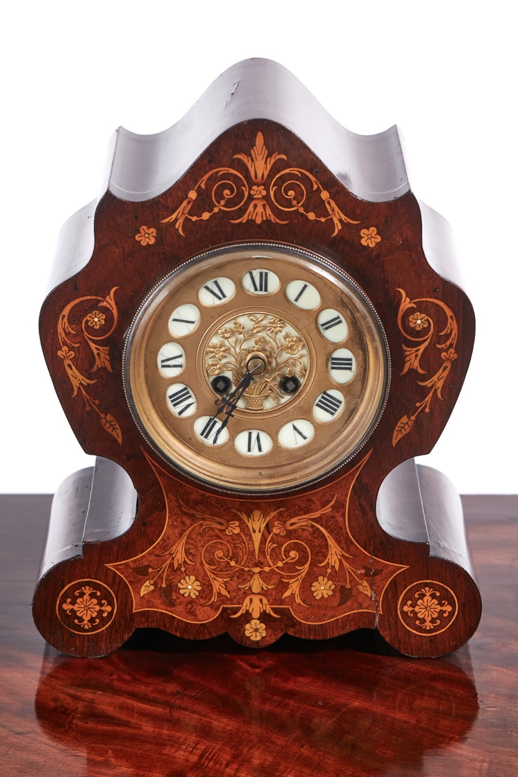 19th Century French Antique Rosewood Marquetry Inlaid 8 Day Mantel Clock (1 of 7)