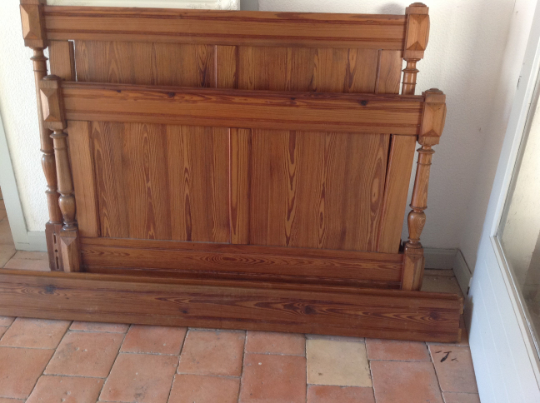 19th Century French Antique Solid Pitch Pine 4'6" 140 Cm Rustic Rural Standard Double Bed