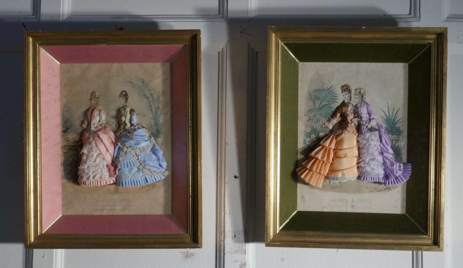 19th Century French Appliqué Framed Fashion Salesman Samples