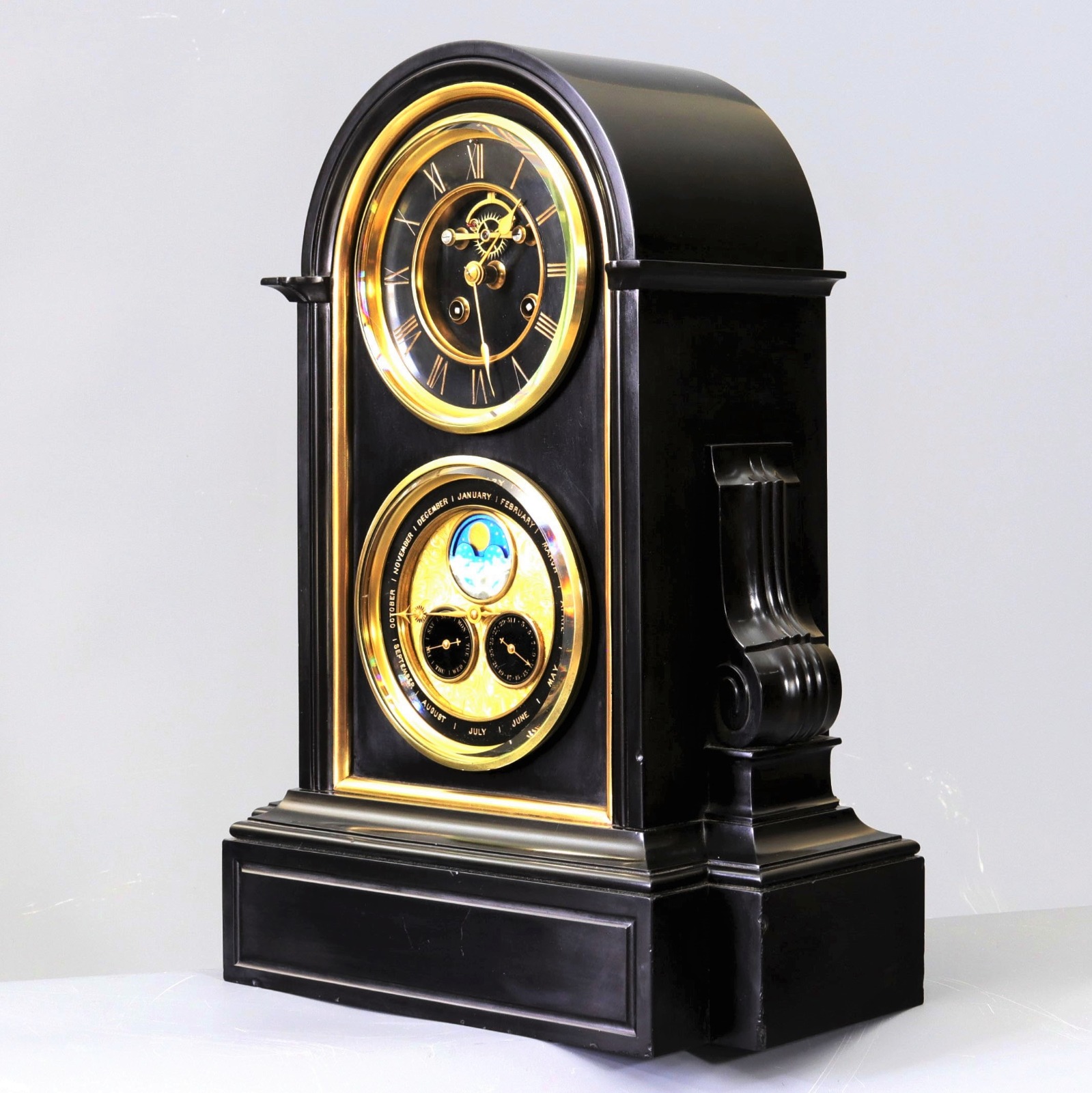 19th Century French Black Marble Perpetual Calendar Clock with Moon-Phase (1 of 1)