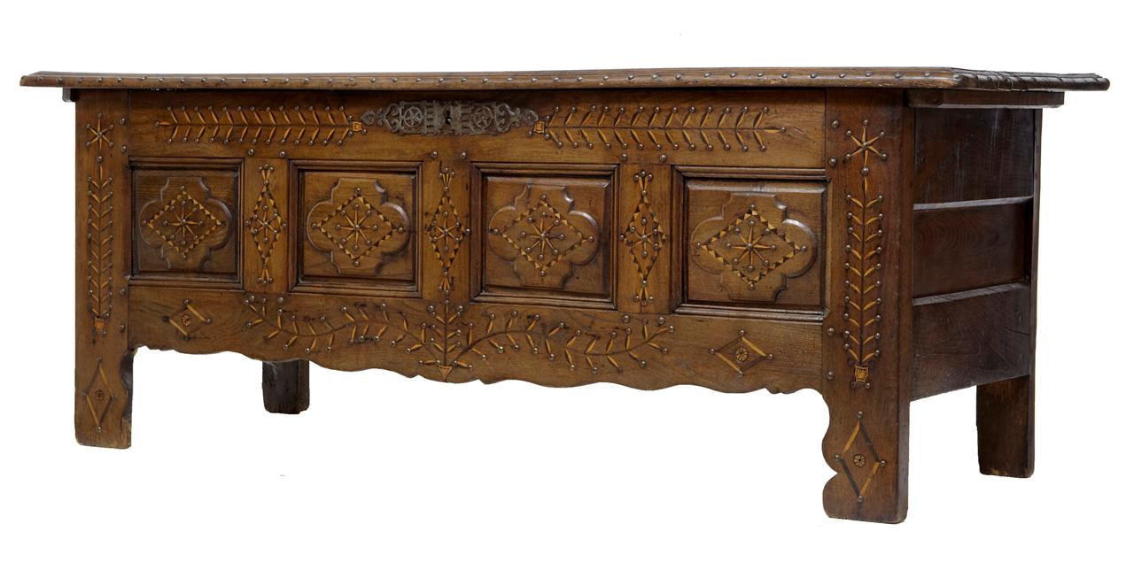 19th Century French Breton Oak Inlaid Coffer c.1810 (1 of 1)