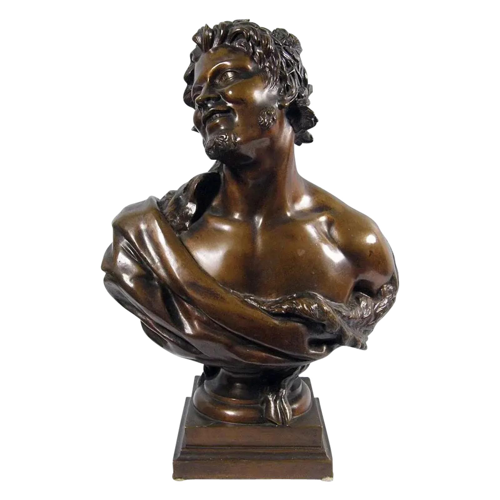 19th-Century French Bronze Bust of Bacchus