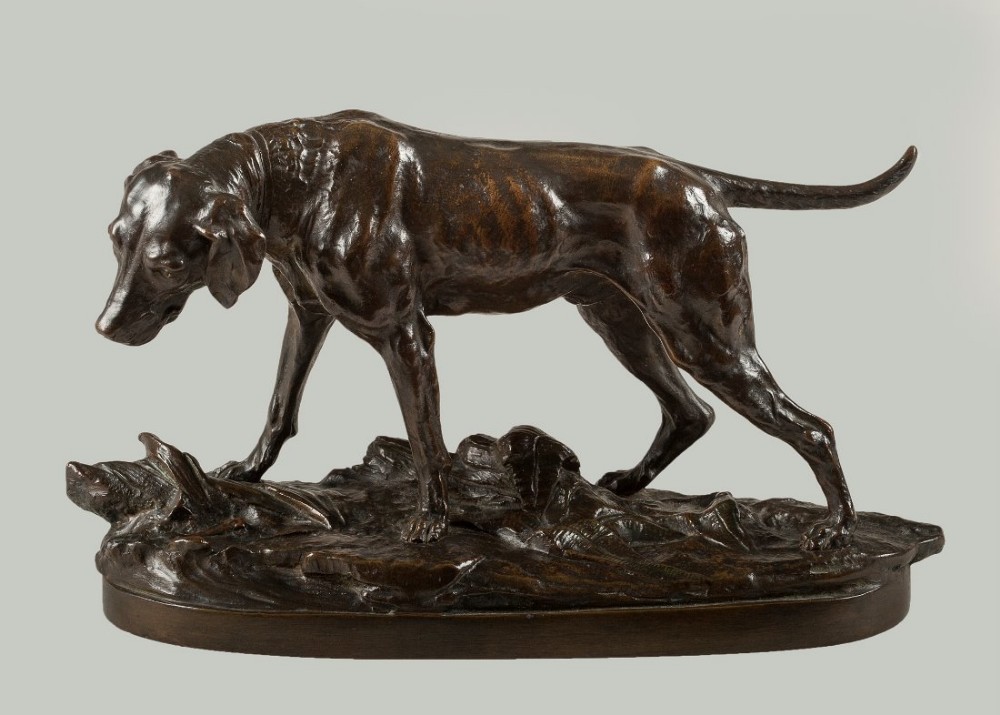 19th Century French Bronze Sculpture of a Dog by French Artist Edouard Drouot