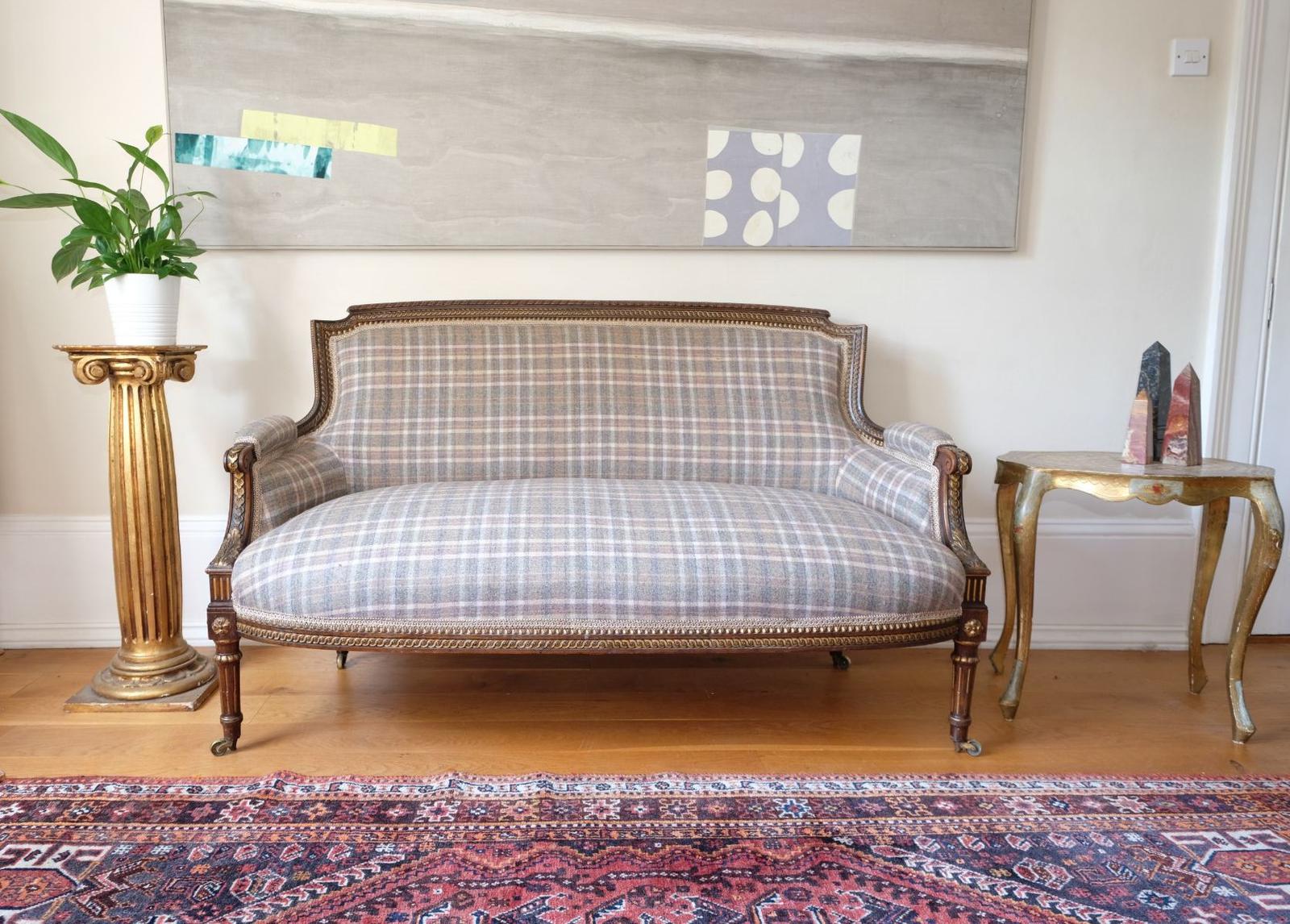19th Century French Carved Walnut & Gilt Salon Settee