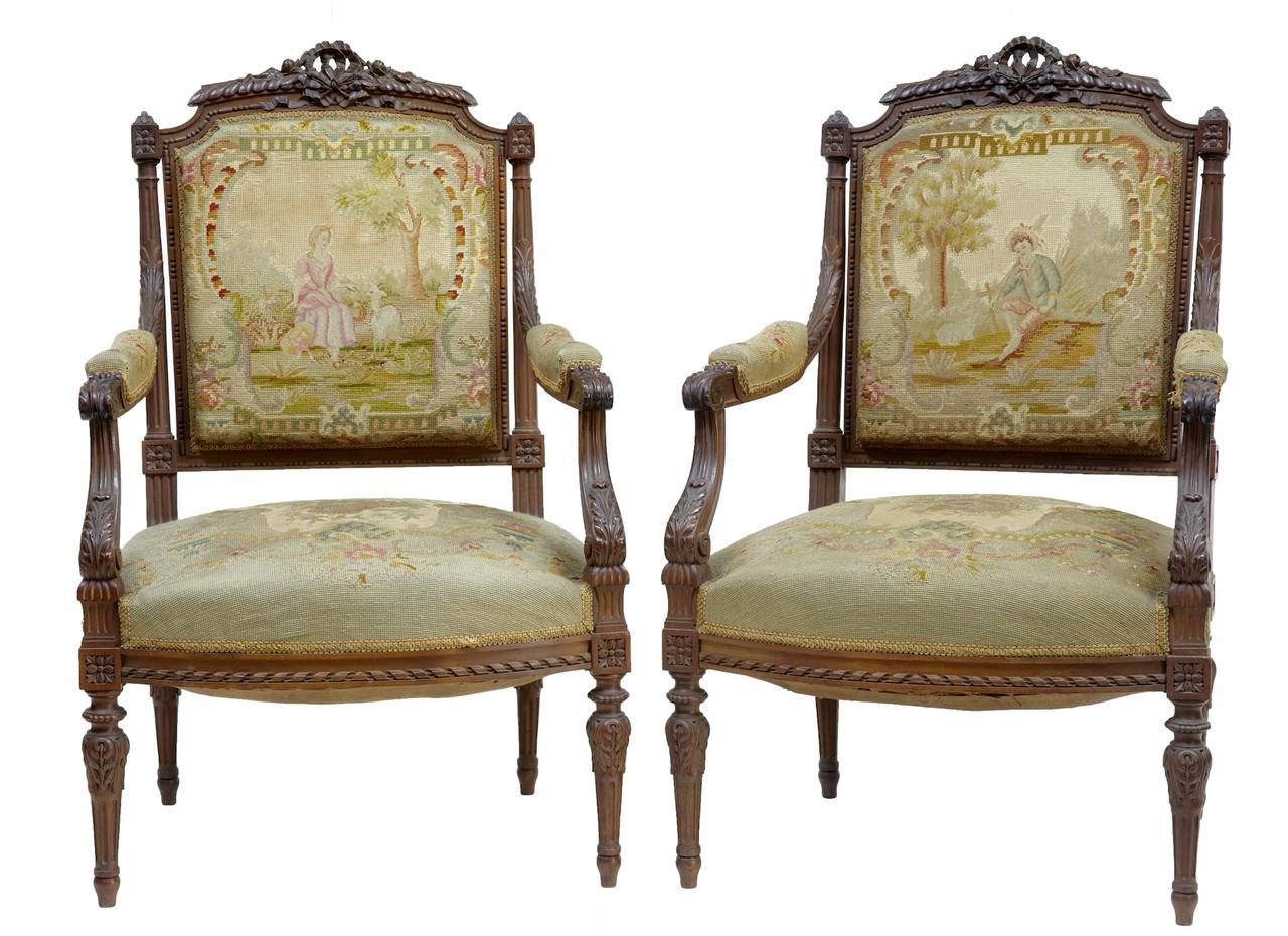19th Century French Carved Walnut Tapestry Armchairs (1 of 10)