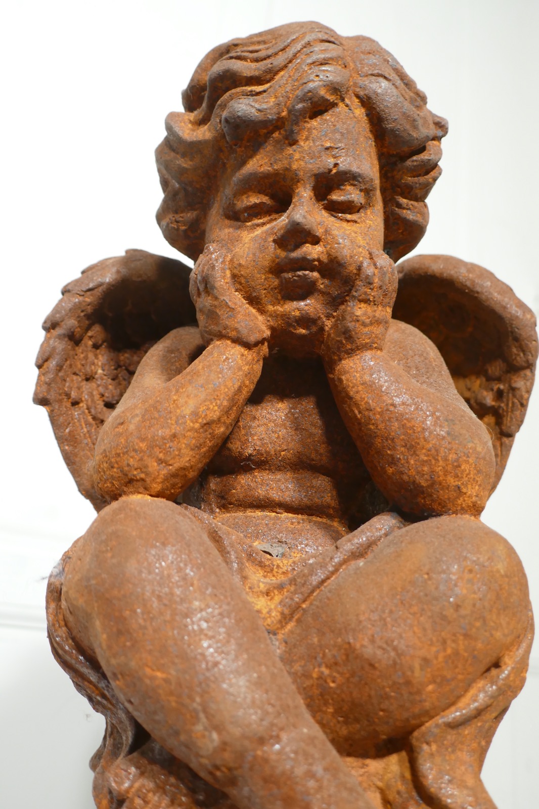 19th Century French Cast Iron Angel, Putti Deep in Thought