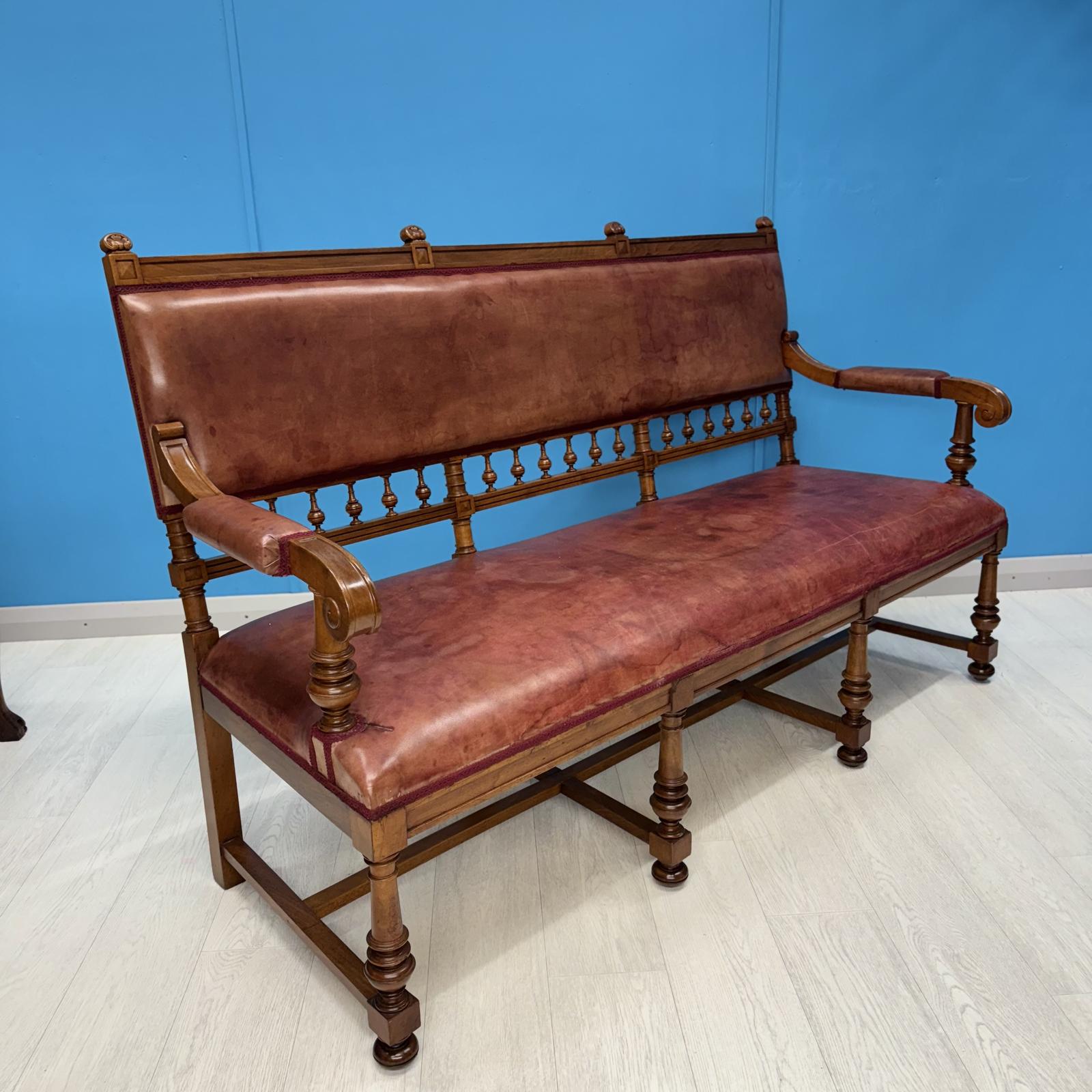 19th Century French Cherrywood & Leather Bench (1 of 7)