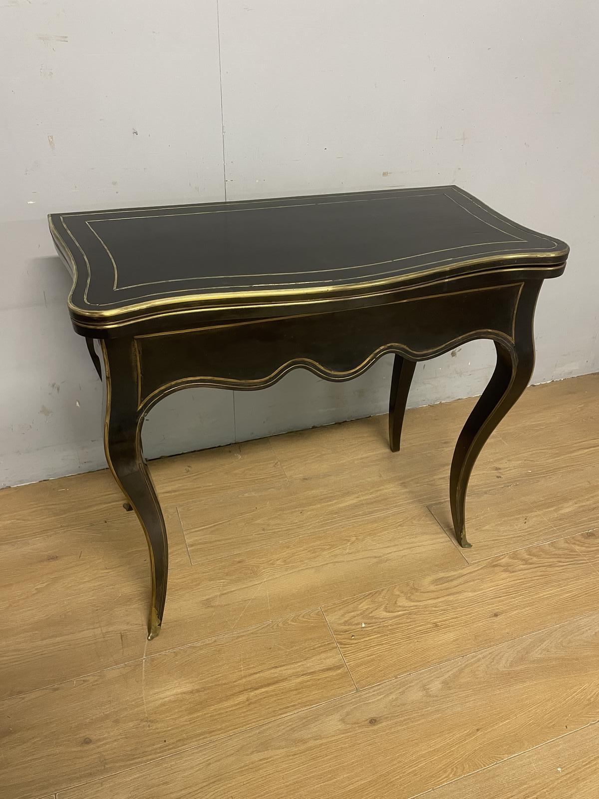 19th Century French Ebonized Card Table with Brass Inlay & Moulding