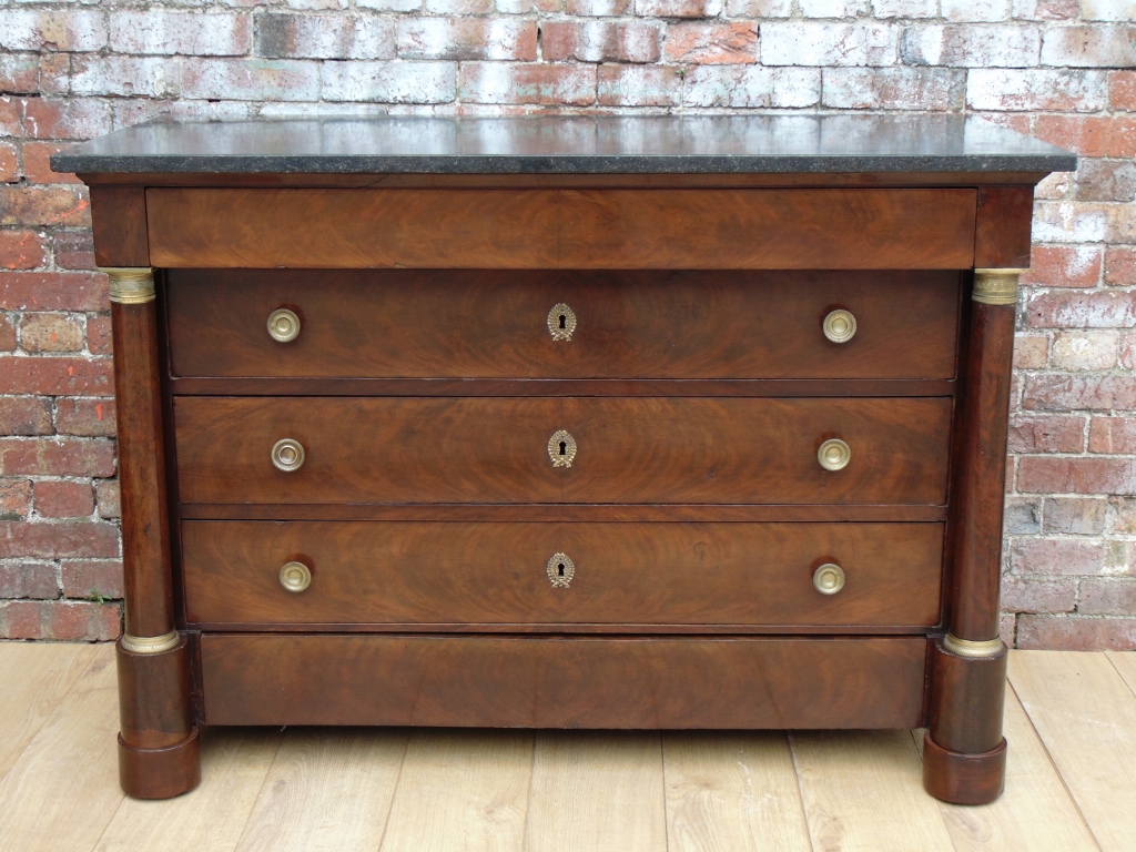 19th Century French Empire Marble Top Mahogany Chest of Drawers