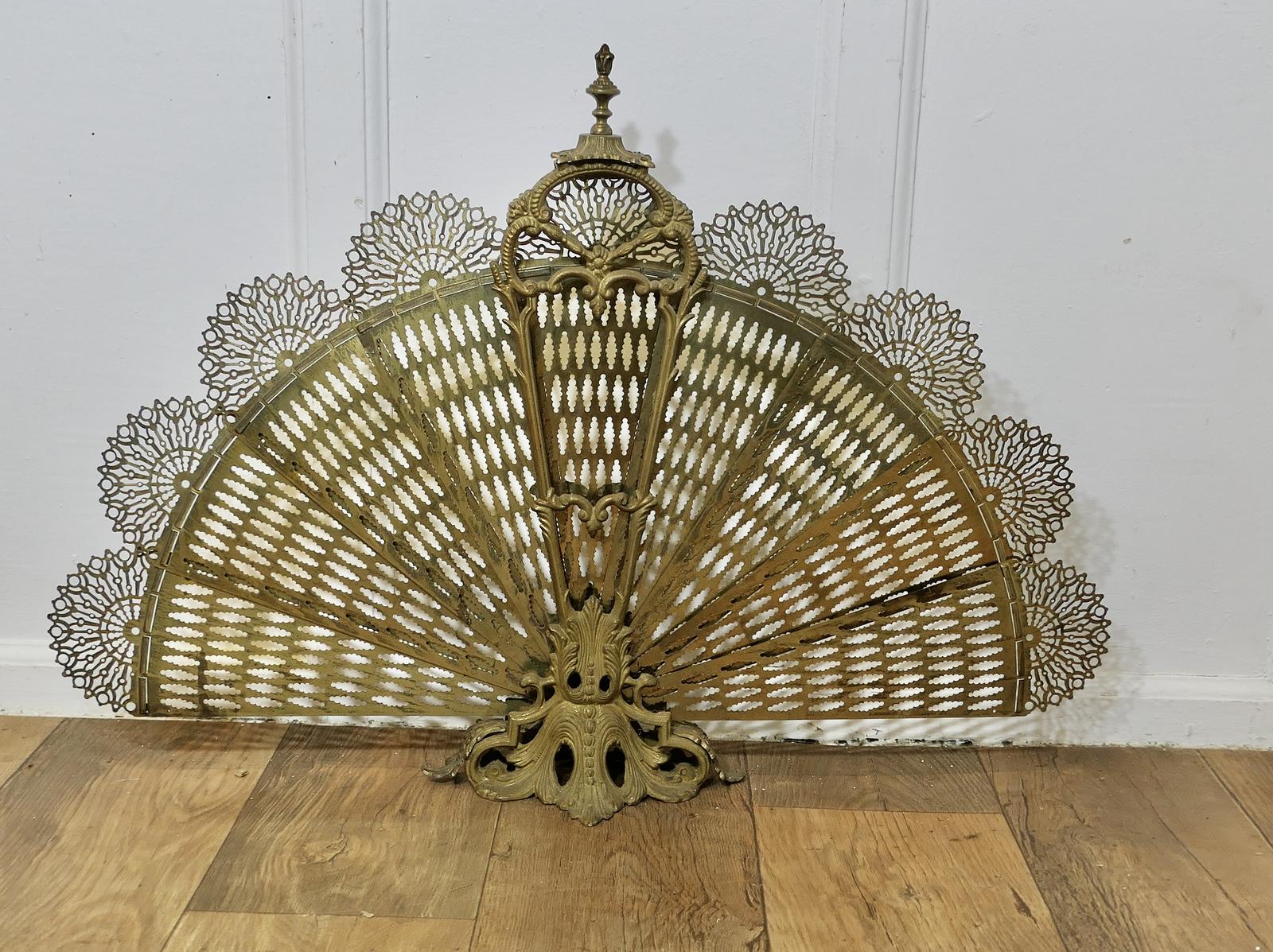 19th Century French Folding Brass Fire Screen Peacock’s Tail Fire Guard
