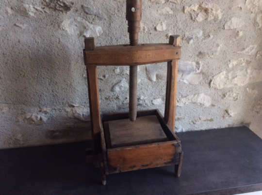 19th Century French Fruitwood Walnut Oil Press with Maker Name