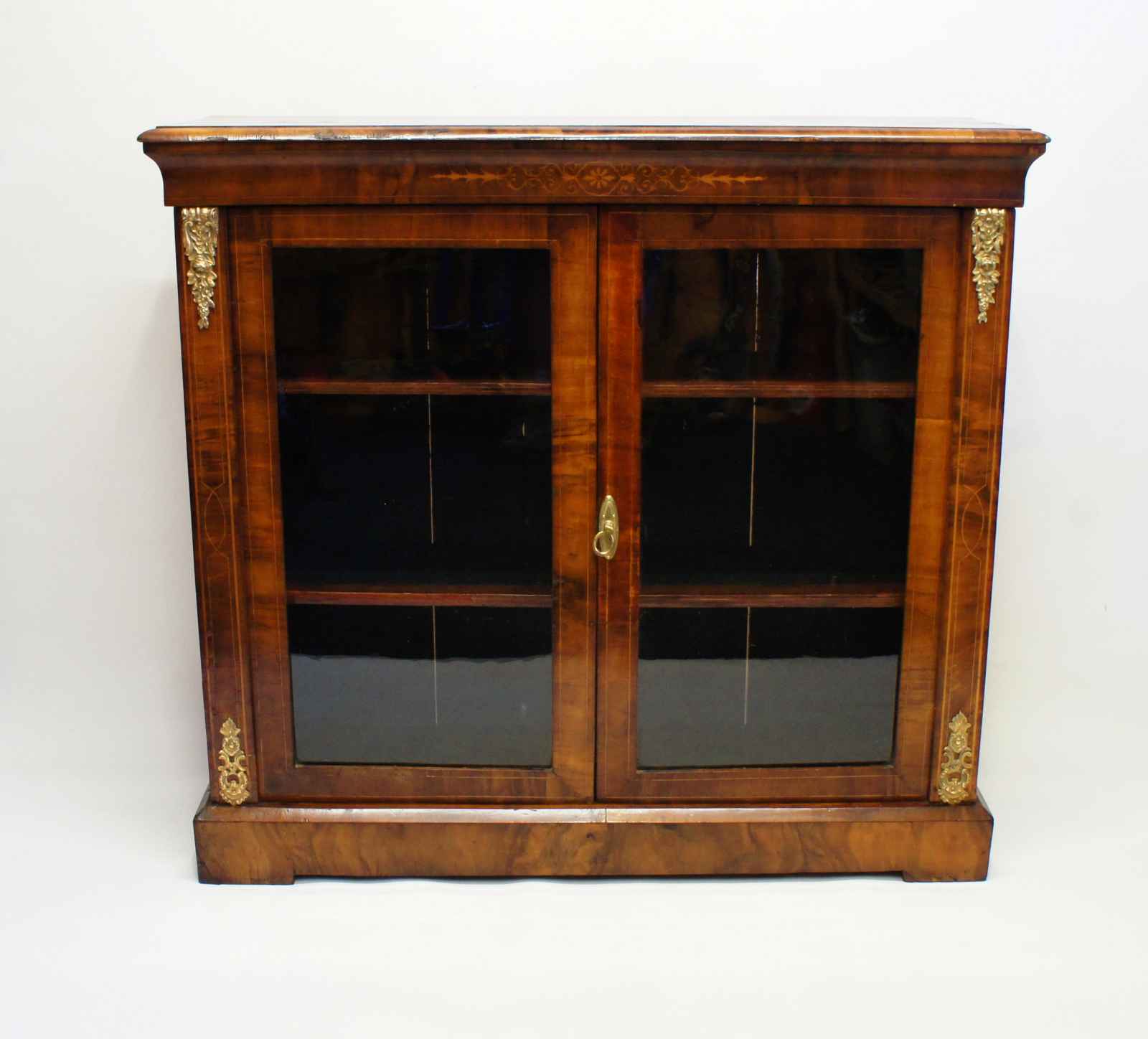 19th Century French Glazed Inlaid Walnut Pier or Display Cabinet with Ormolu Mounts