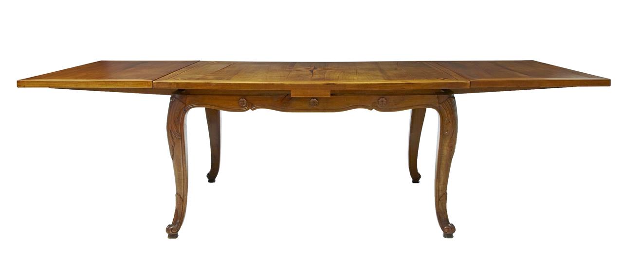 19th Century French Inlaid Fruitwood Drawleaf Dining Table