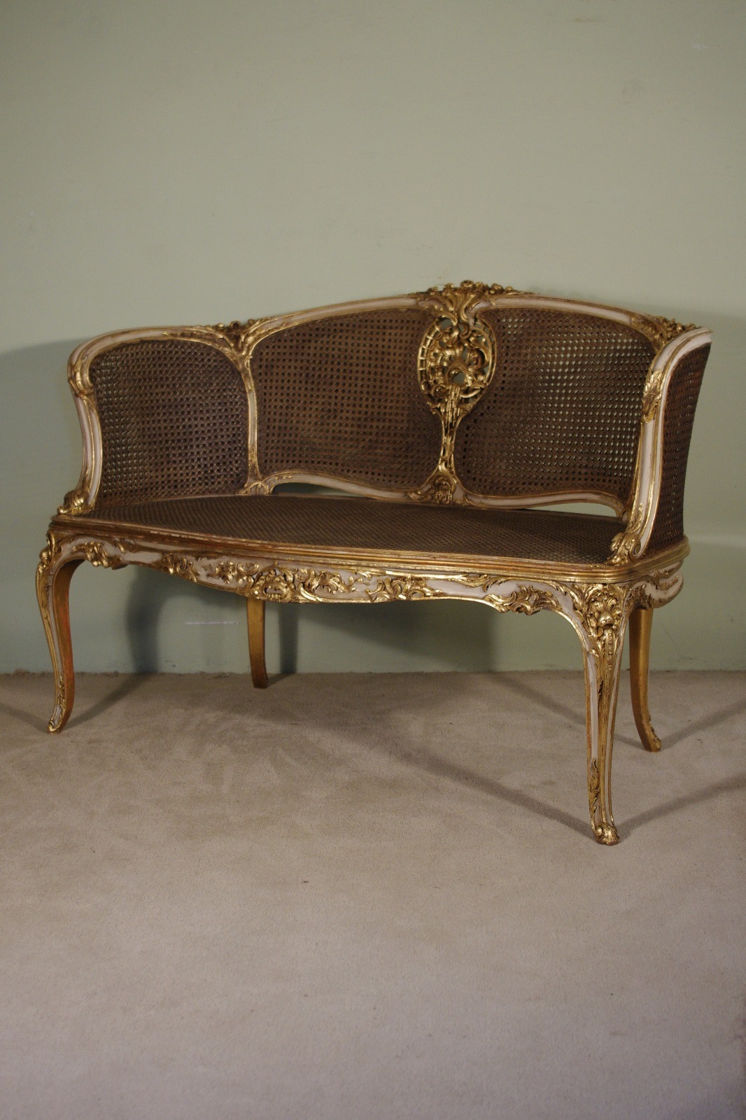 19th Century French Louis XV Style Painted / Gilt Cane Sofa (1 of 1)