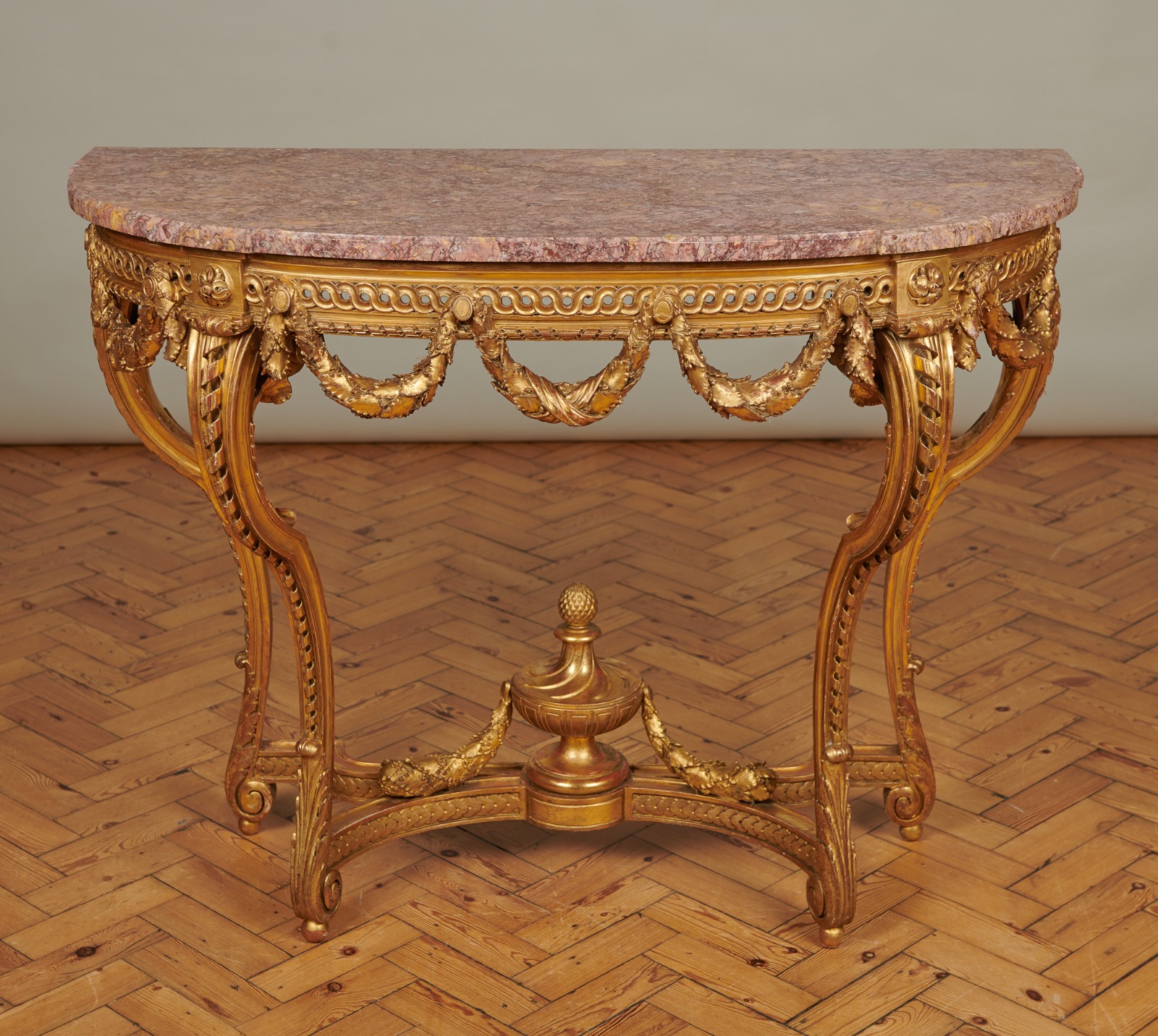 19th Century French Louis XVI Style Gilt Carved Wood Console Table with Marble Top (1 of 1)
