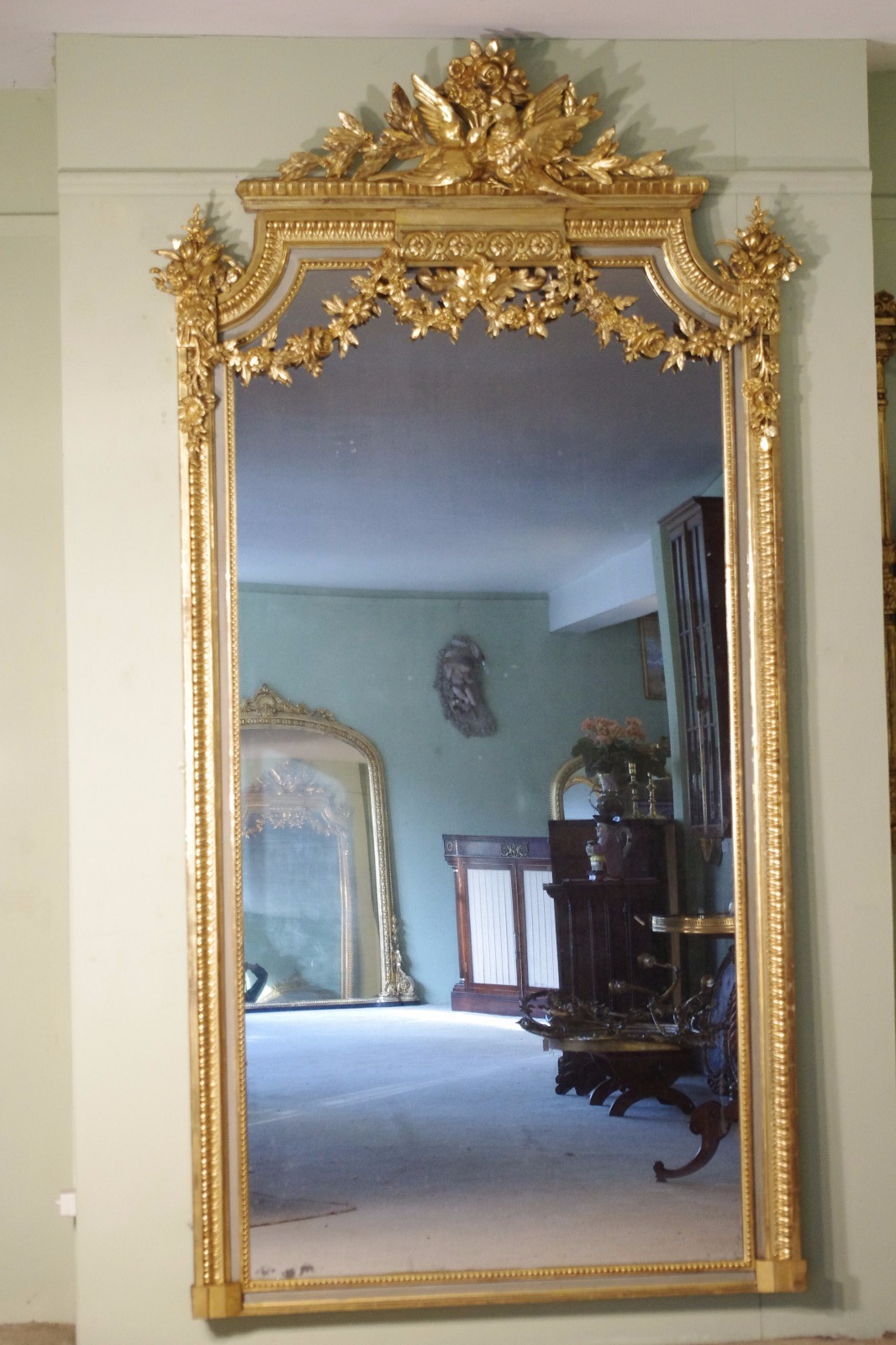 19th Century French Louis XVI Style Painted & Parcel Gilt Mirror (1 of 1)