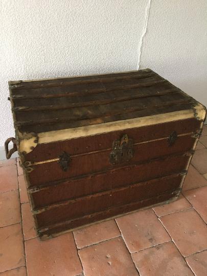 19th Century French "Louvre Paris" Vellum, Leather & Rattan Tarvelling Trunk with Tray 'like Louis Vuitton'