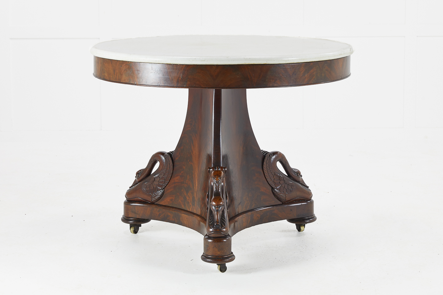 19th Century French Mahogany Marble Top Table (1 of 5)