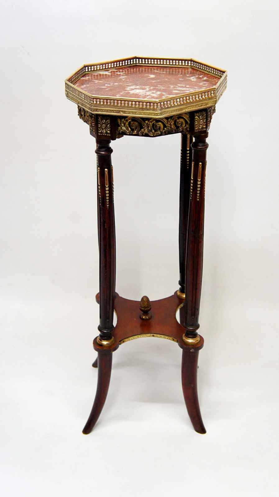 19th Century French Marble Top Mahogany Plant Stand, Ormolu Decoration