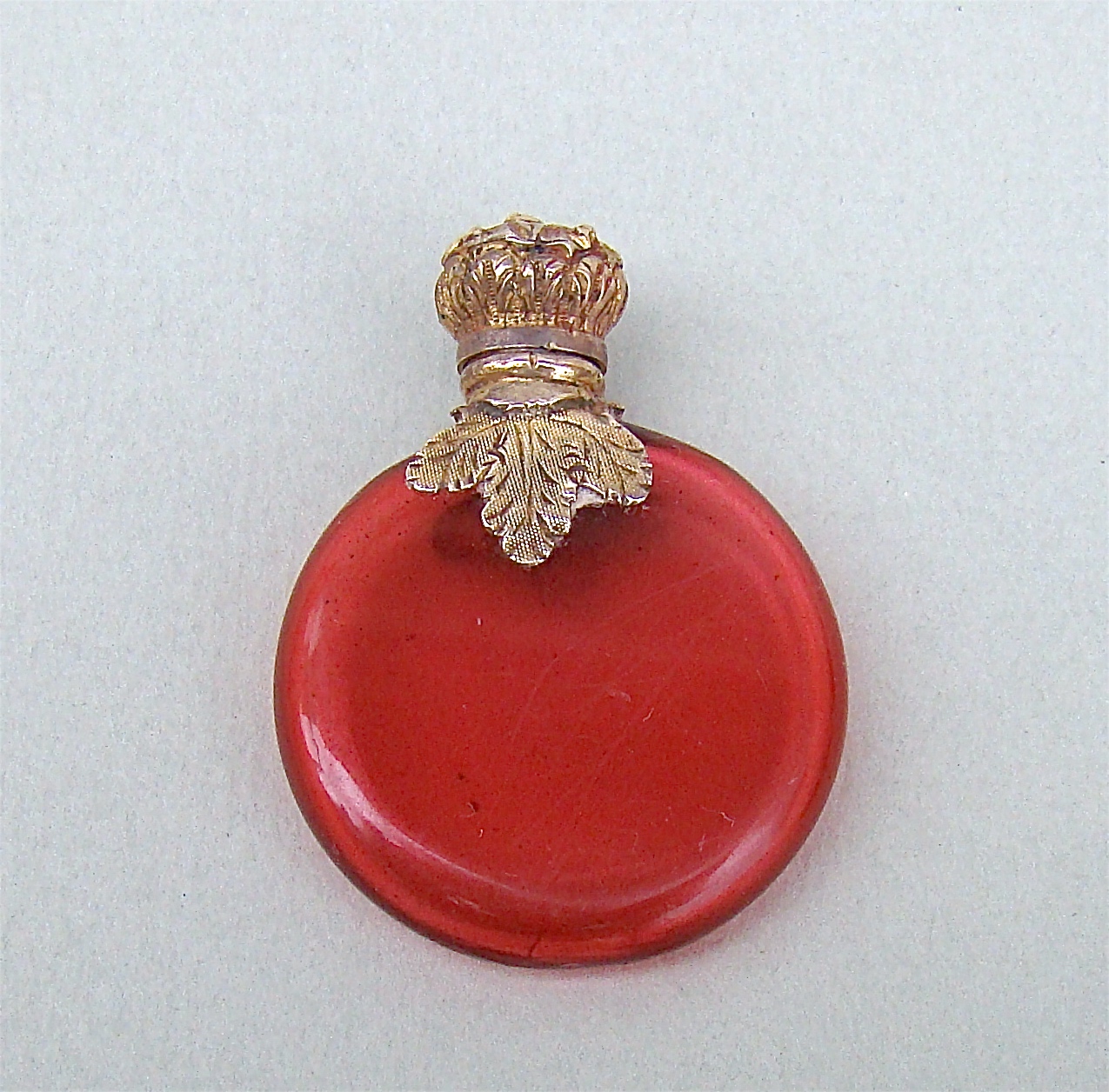 19th Century French Ormolu & Cranberry Glass Miniature Scent Bottle c.1890