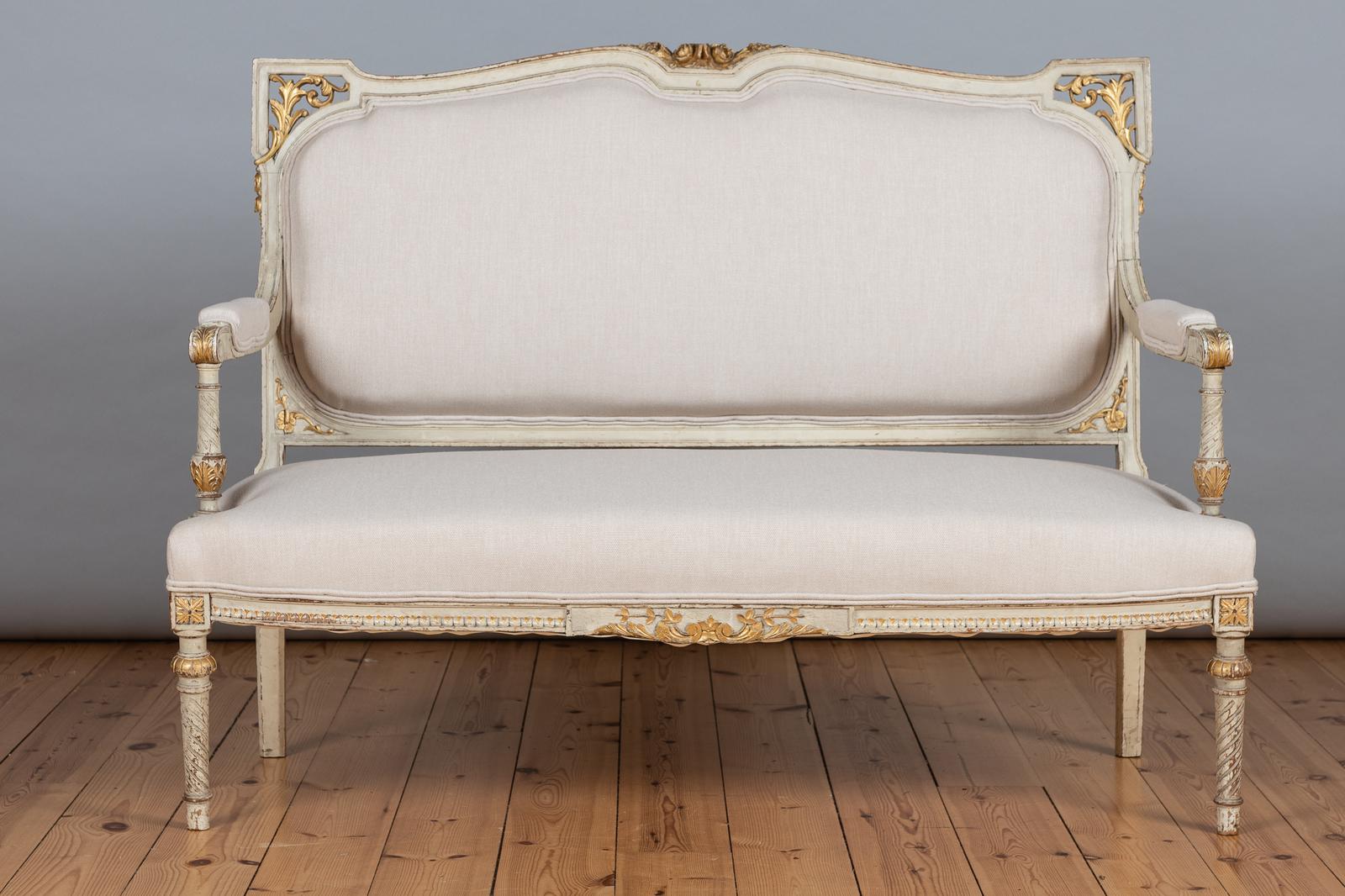 19th Century French Painted & Parcel-Gilt Upholstered Sofa (1 of 8)