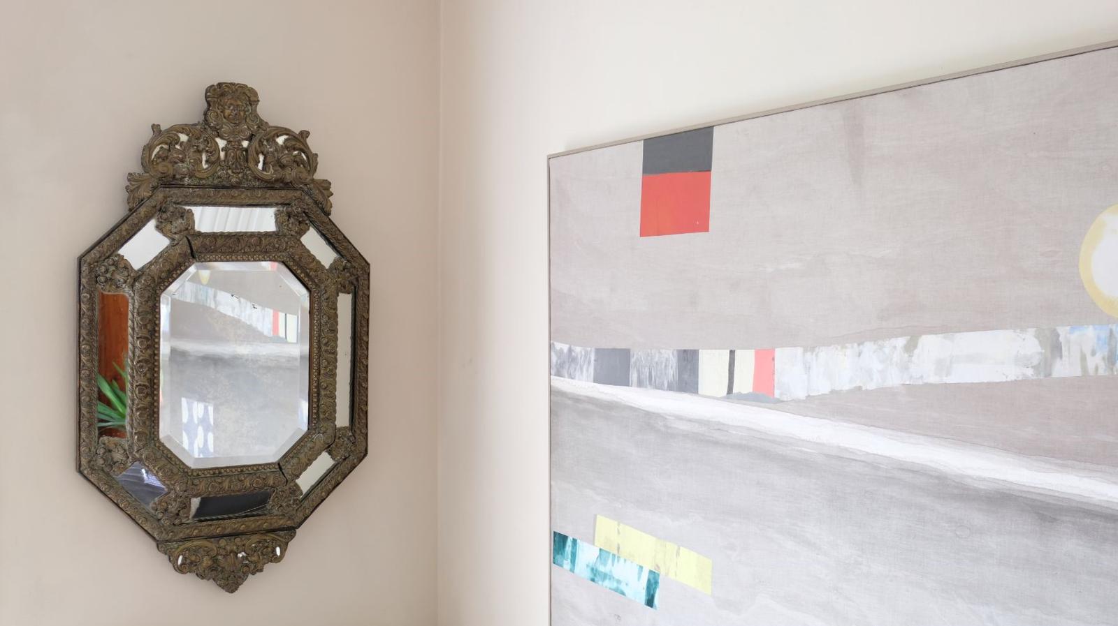 19th Century French Renaissance Style Octagonal Repousse Brass Cushion Framed Mirror