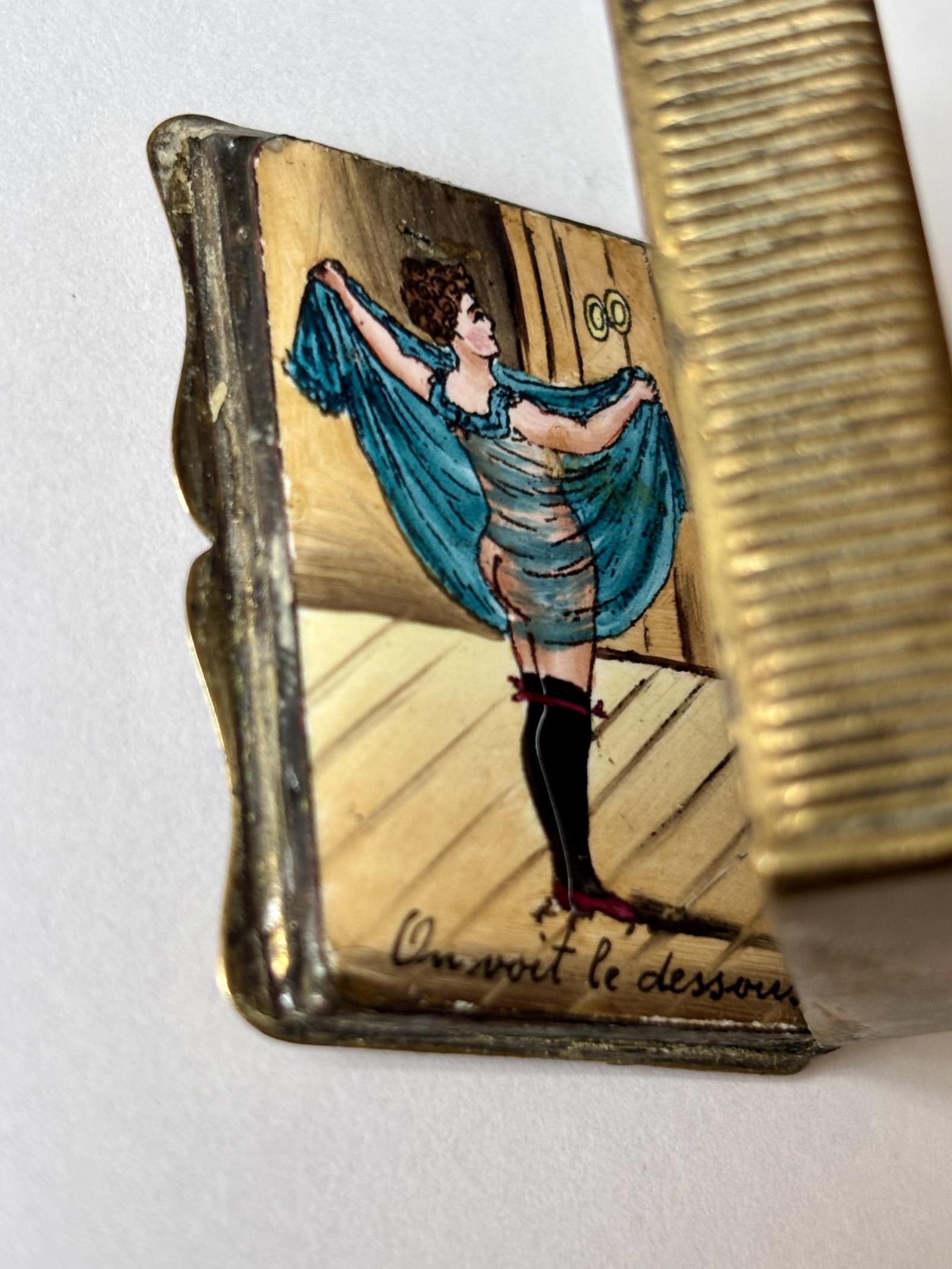 19th Century French Risqué Erotica Brass & Enamel Vesta Case