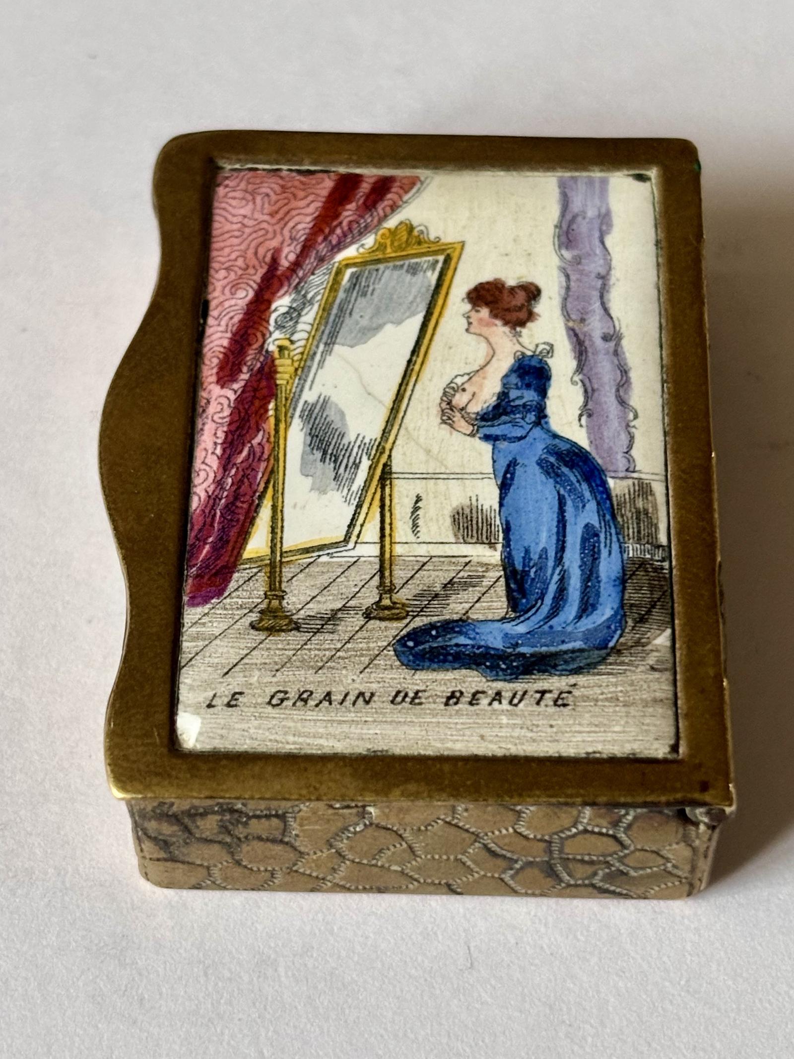 19th Century French Risqué Erotica Brass & Enamel Vesta Case