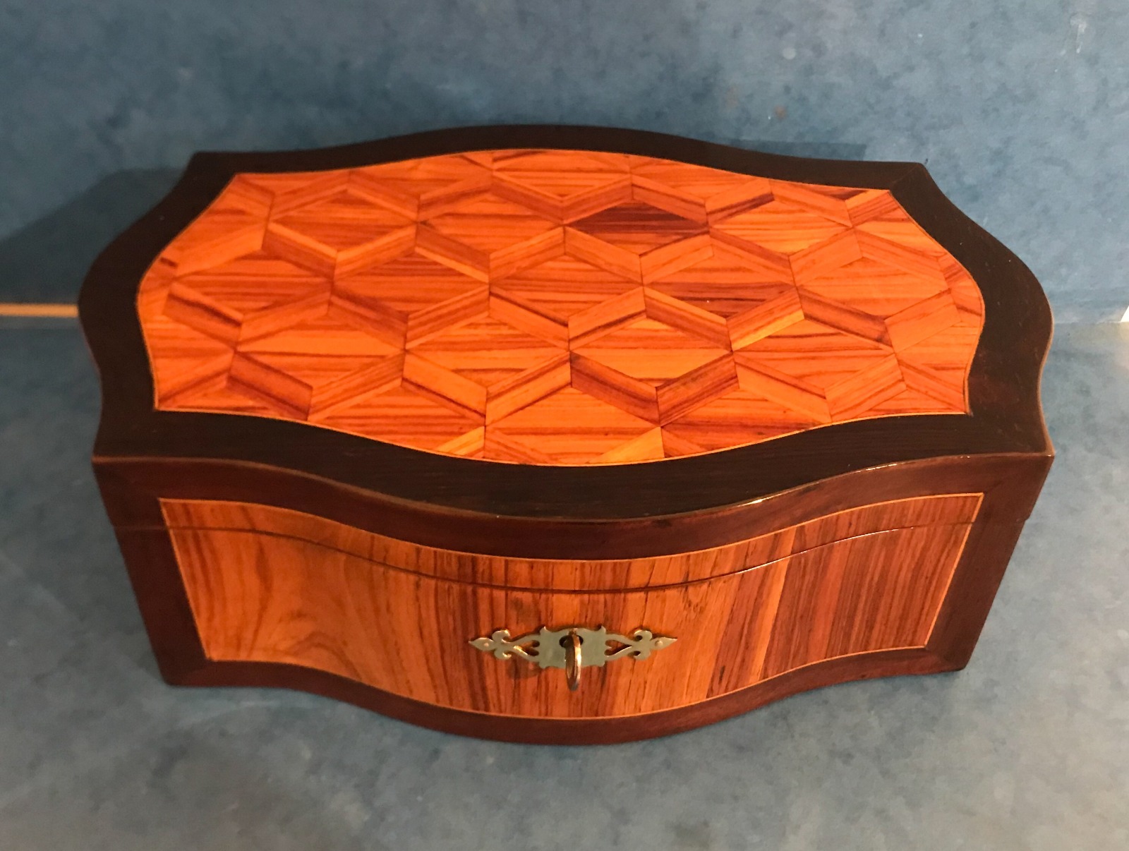 19th Century French Rosewood, Mahogany & Tulipwood Box