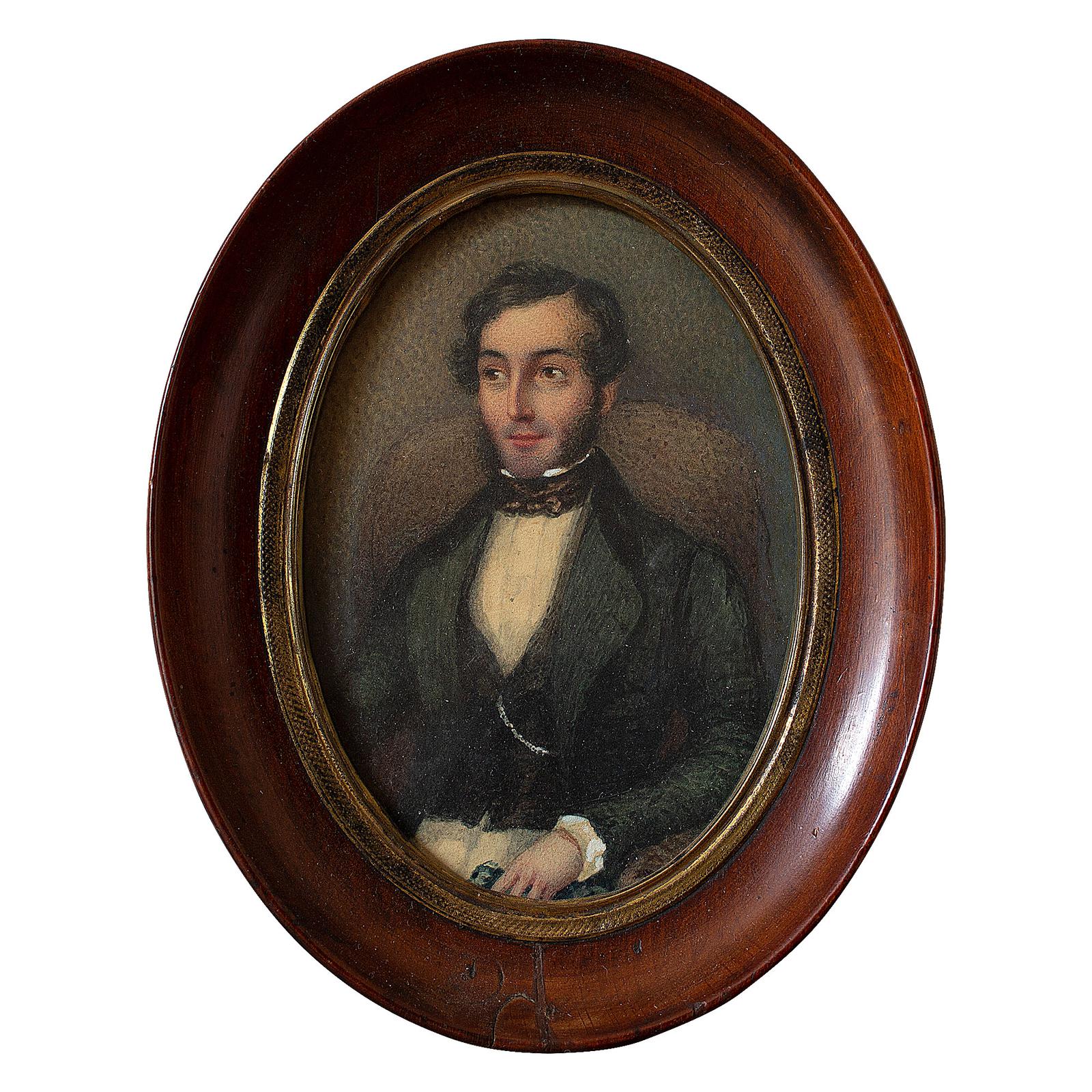 19th-Century French School Miniature Portrait Of A Gentleman, Watercolour