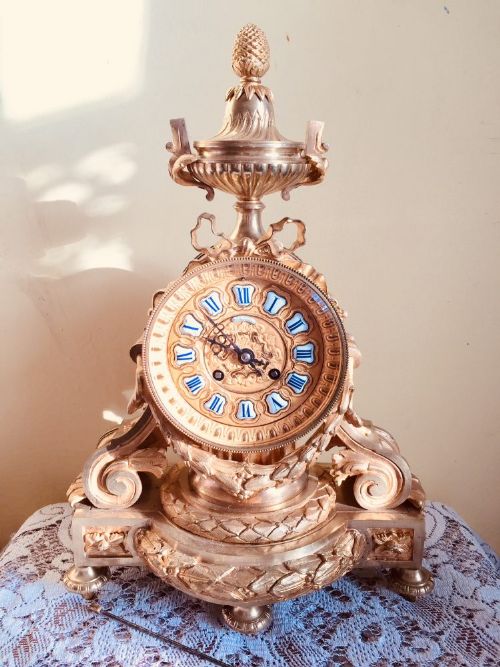 19th Century French Solid Gilt Ormolu Bronze Mantle Clock by S. Marti