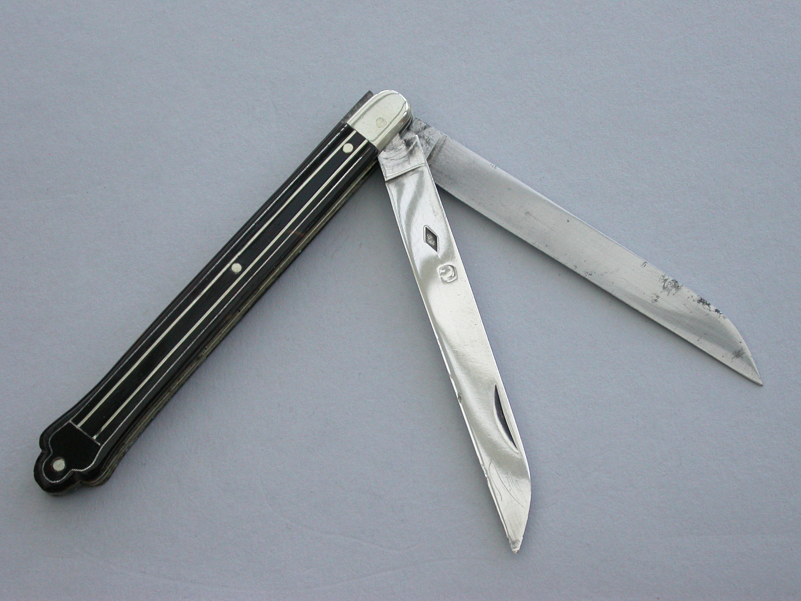 19th Century French Tortoiseshell, Silver & Steel Twin Bladed Folding Fruit Knife, the Silver Blade with the Makers Mark 'M.P.' the Steel Blade with the Cutlers Mark of Pierrotin