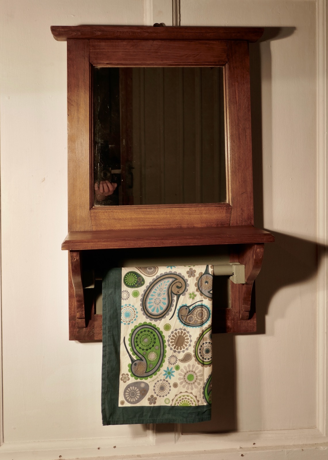 19th Century French Walnut Cloakroom Wall Mirror with Towel Rail