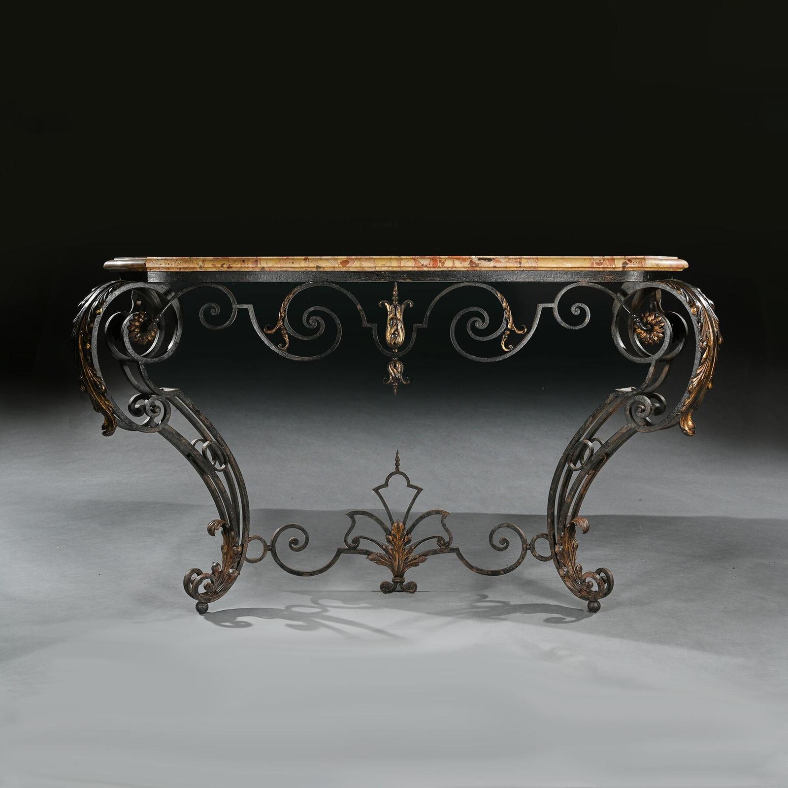 19th Century French Wrought Iron & Parcel Gilt Breche D Alep Marble Top Console Table