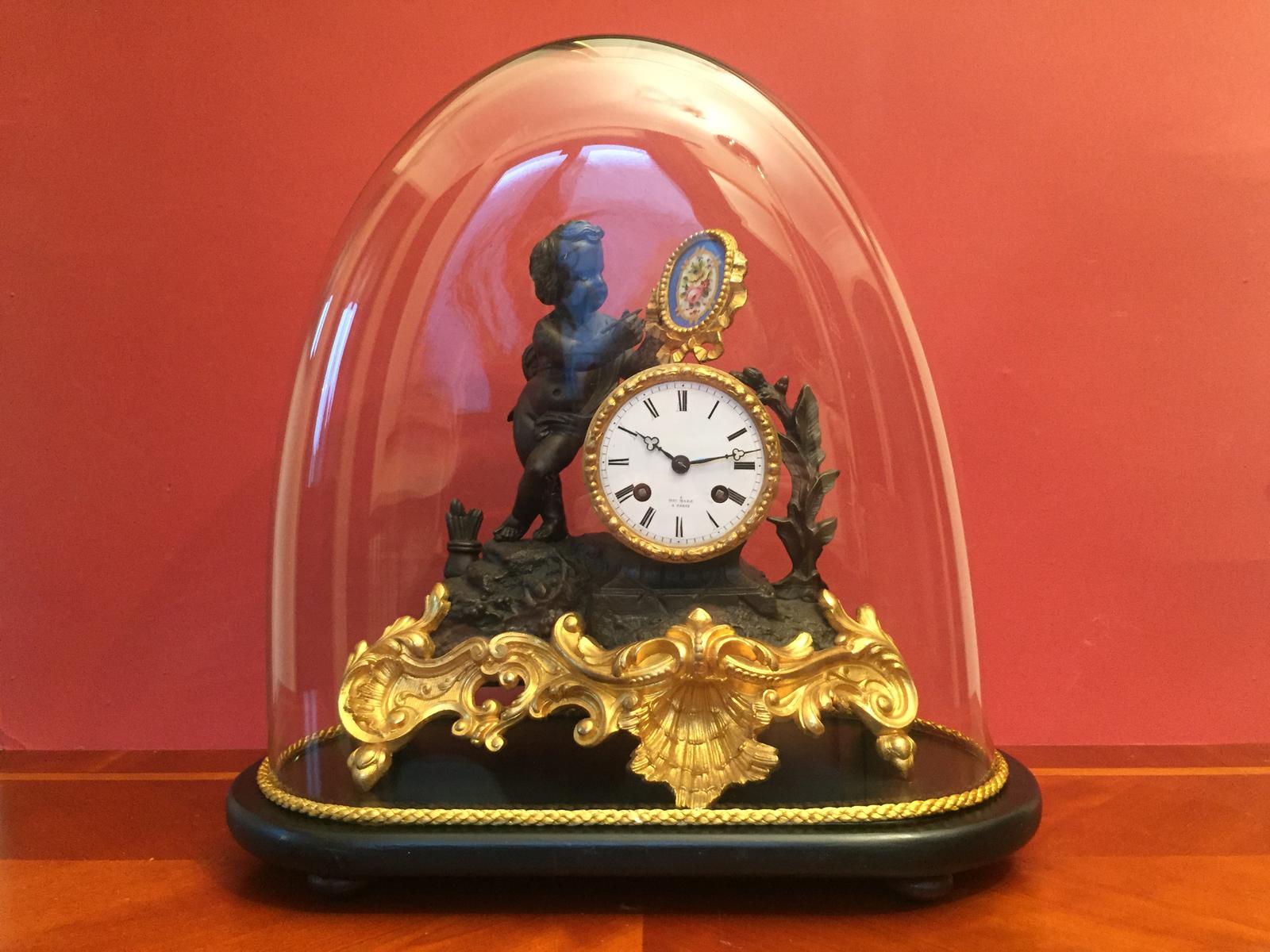 19th Century gilt metal clock by "Henri Marc" Paris under glass dome c.1870