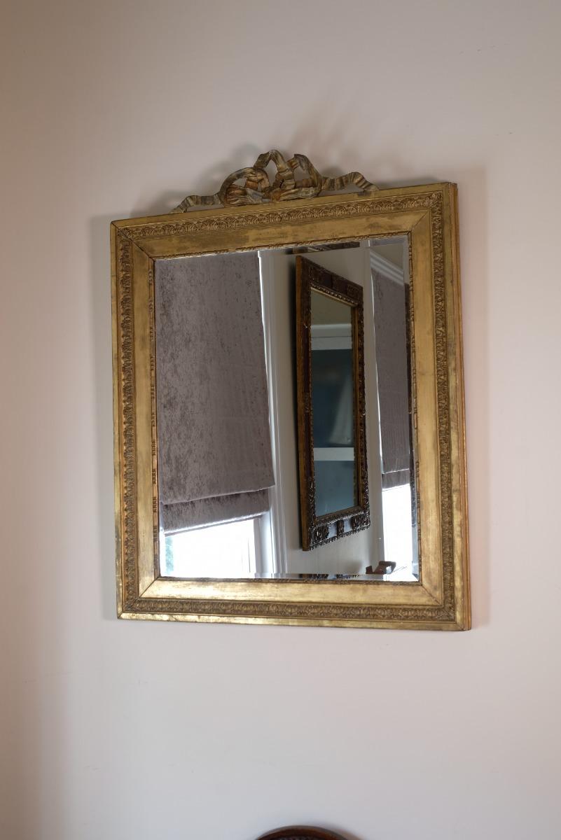 19th Century Giltwood Beveled Mirror & Ribbon Crest