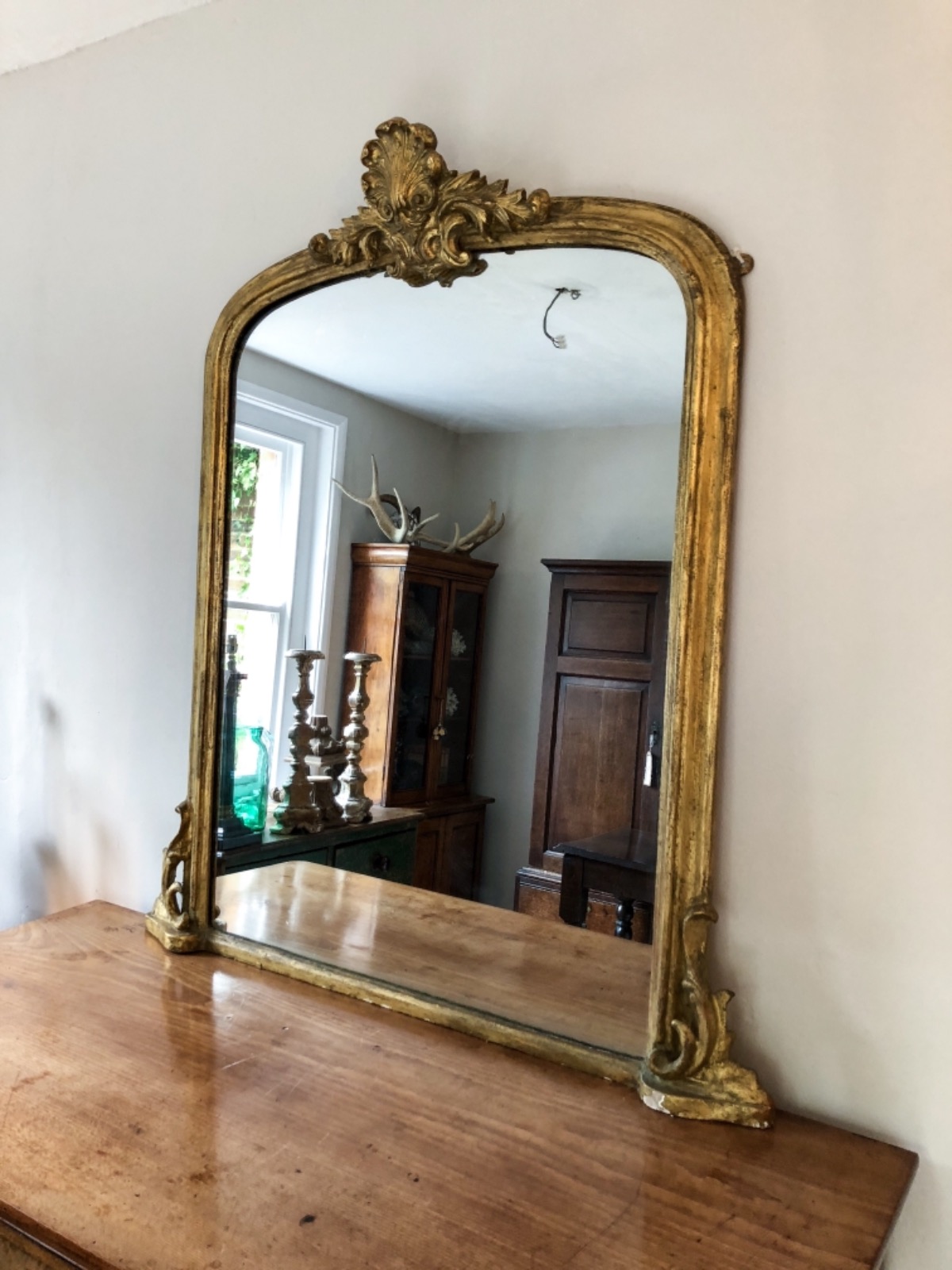 19th Century Giltwood Overmantle Mirror with Original Plate