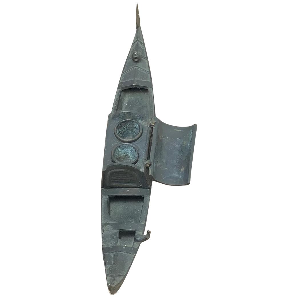 19th Century Grand Tour Venetian Bronze Marine Gondola Inkwell