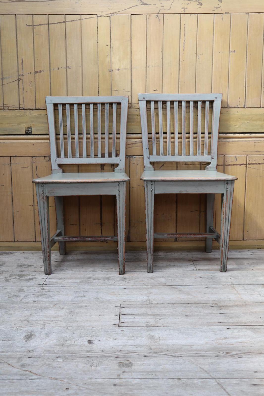 19th Century Gustavian Swedish Vernacular Painted Pair of Slat-back Chairs