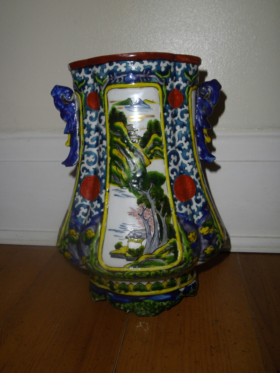 19th Century Hand Painted Japanese Kutani Porcelain Coloured Vase-Meiji c.1890
