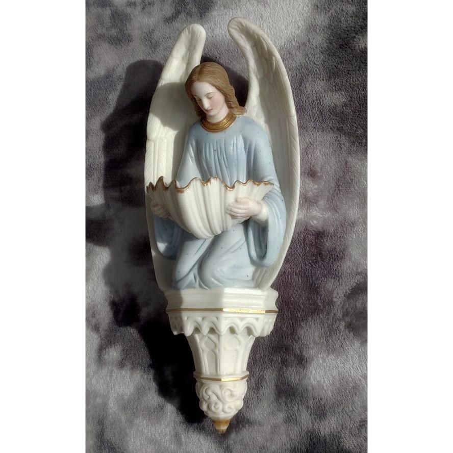 19th Century Holy Water Font Religious Irish Bisque Porcelain Angel Antique